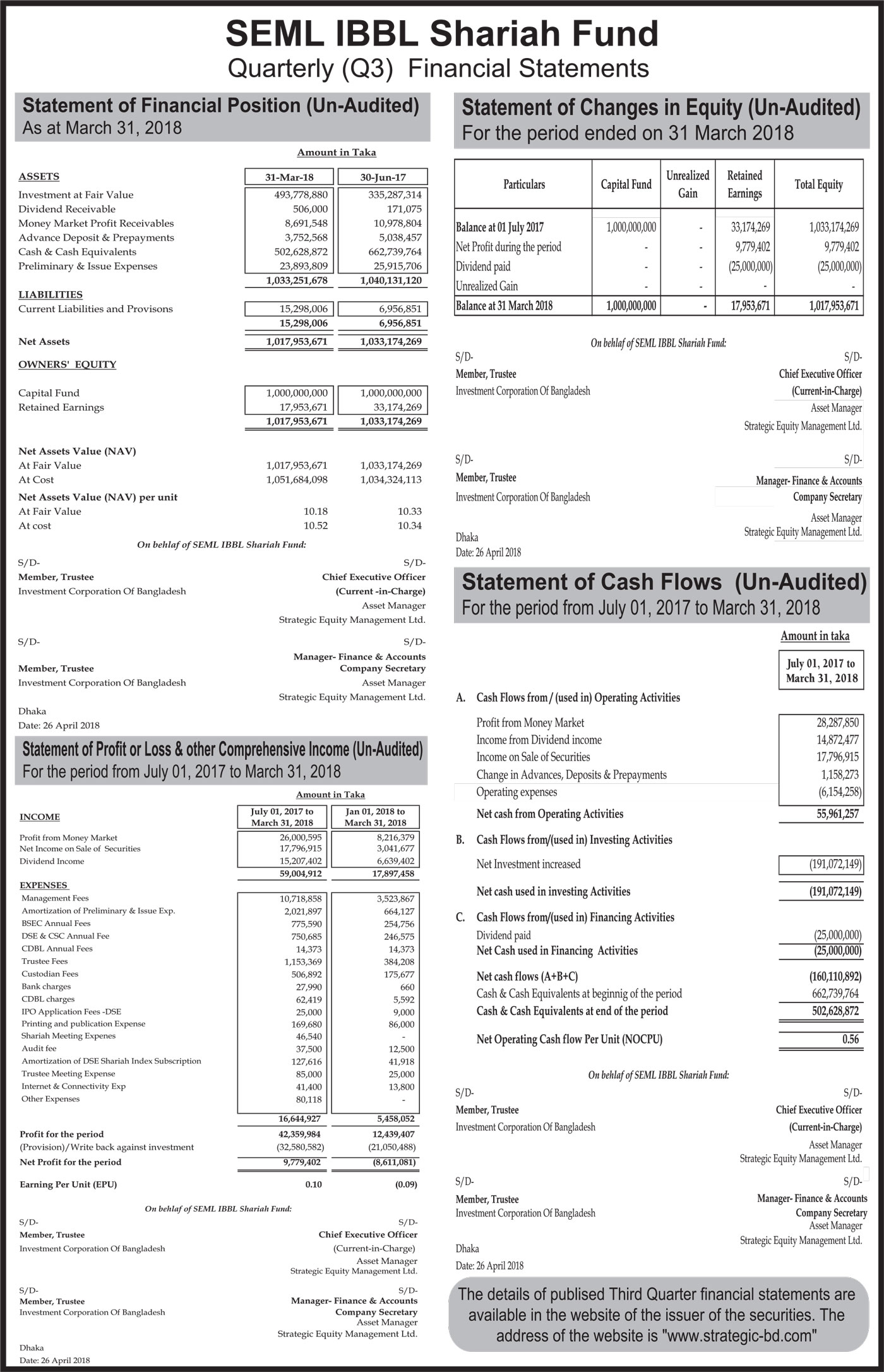 Q3 Financial Statements of (Un-audited) of SEML IBBL Shariah Fund