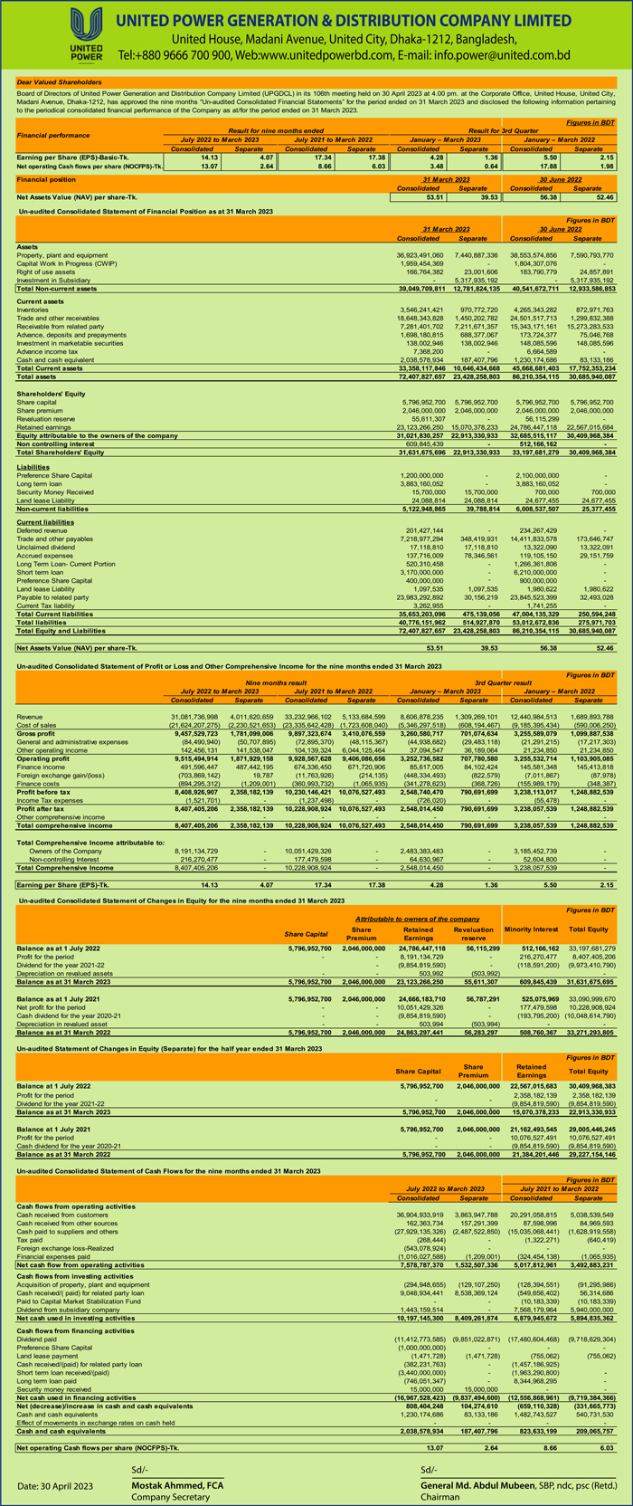Q3 Financial Statements of United Power Generation & Distribution Company Ltd