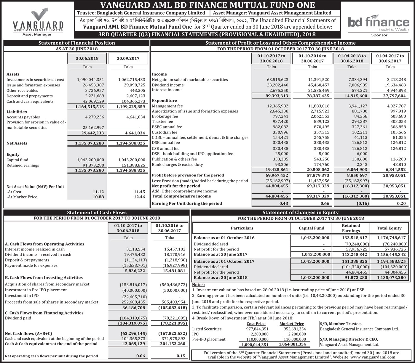 Q3 Financial Statements (Provisional & Unaudited) of Vanguard AML BD Finance Mutual Fund One