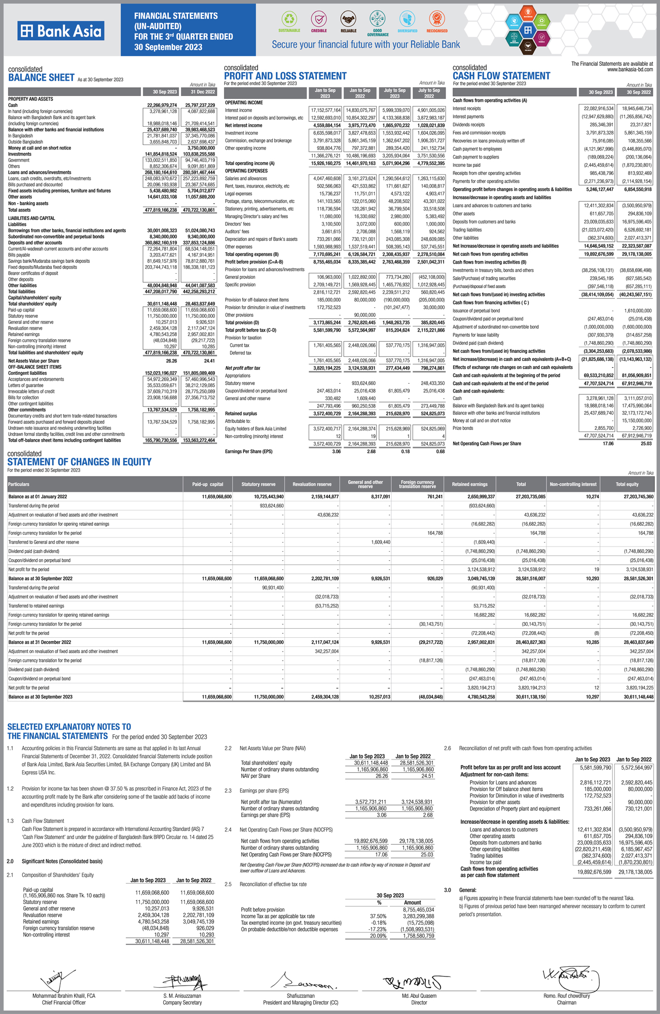 Un-audited Q3 Financial Statements of Bank Asia