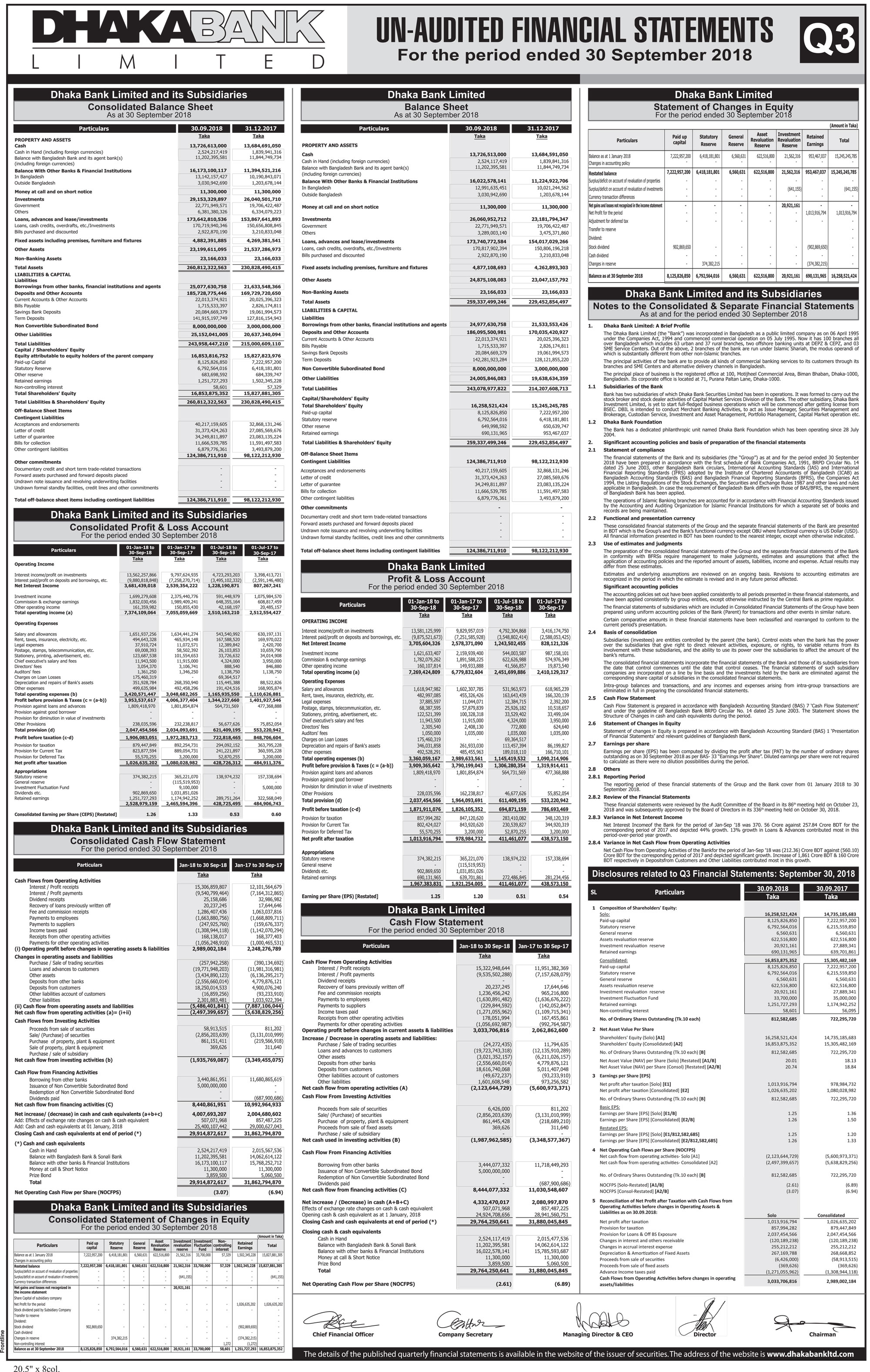 Q3 Financial Statements (Un-audited) of Dhaka Bank