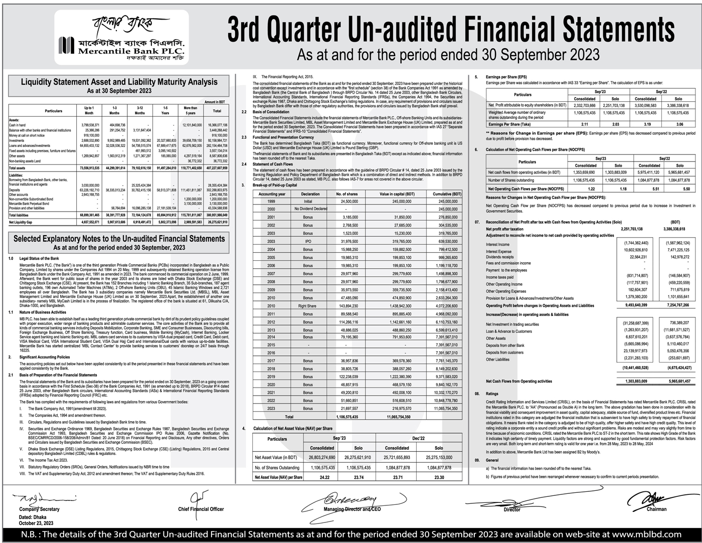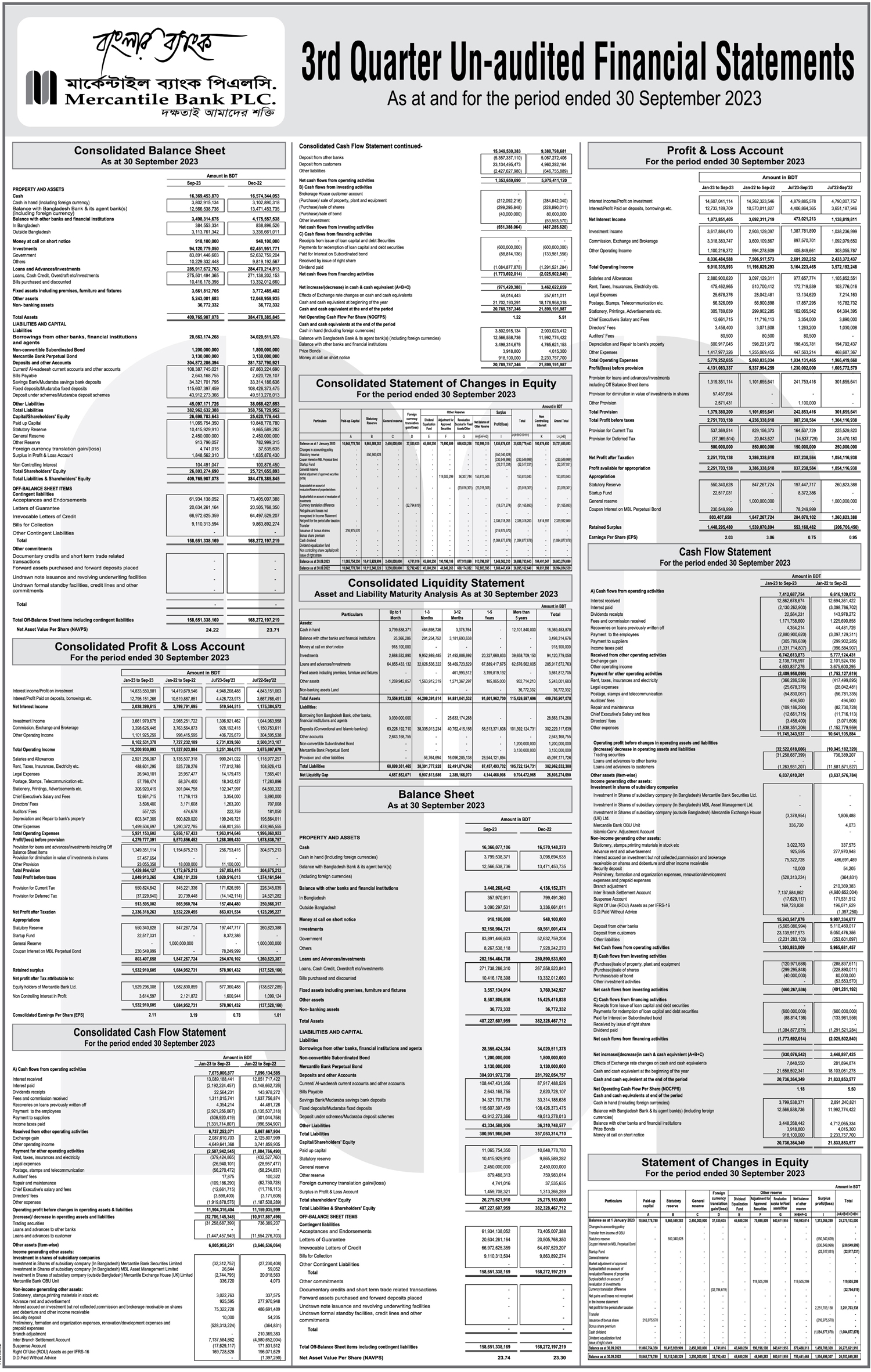 Q3 Financial Statements (Un-audited) of Mercantile Bank Limited