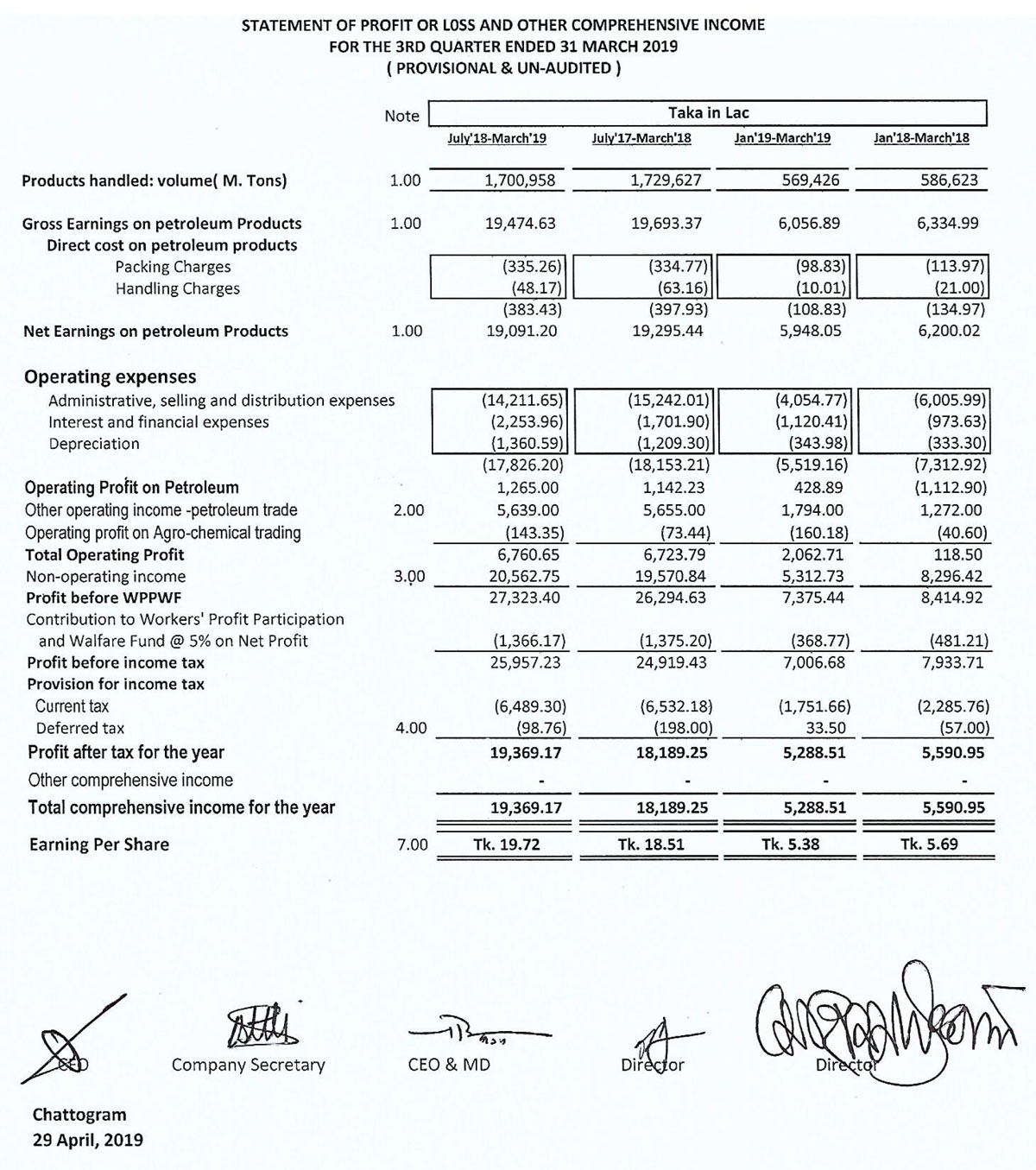 Q3 Financial Statements (Un-audited) of Padma Oil Company Ltd