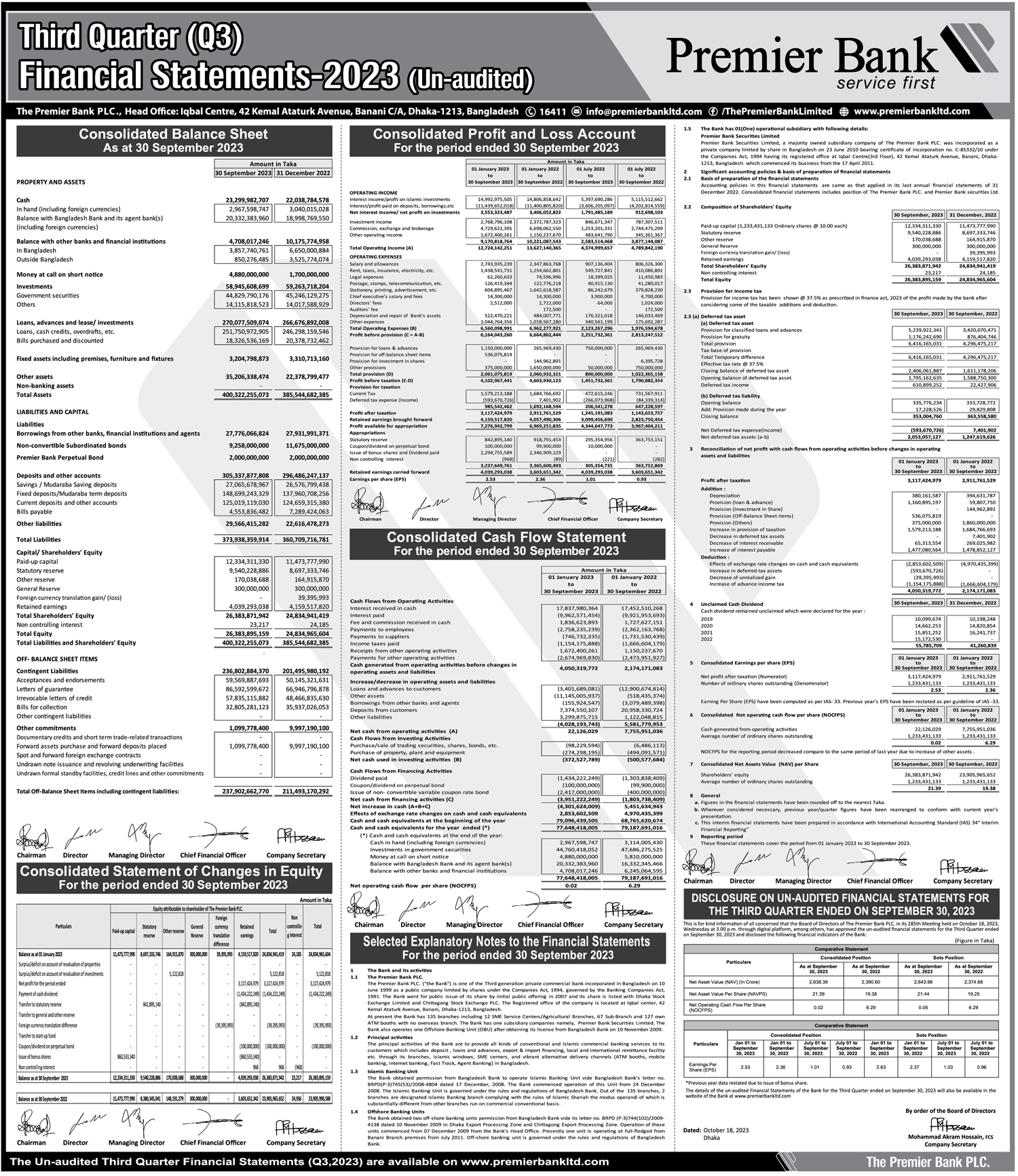 Q3 Financial Statements (Un-audited) of Premier Bank PLC