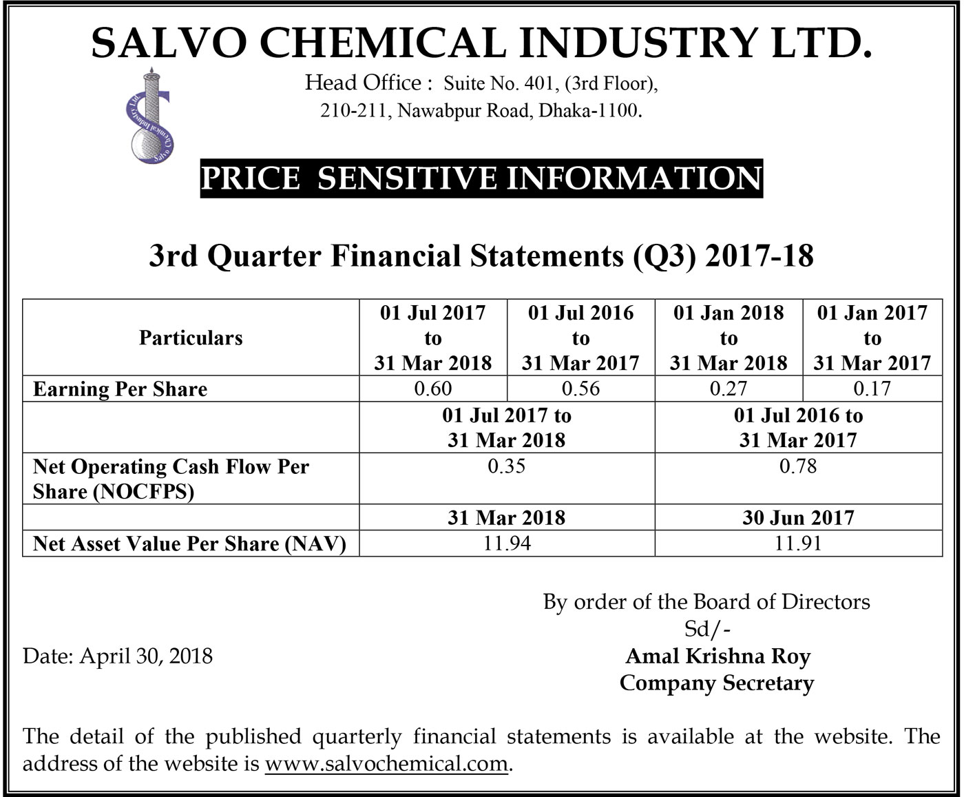 Q3 Financial Statements (Un-audited) of Salvo Chemical Industry Limited