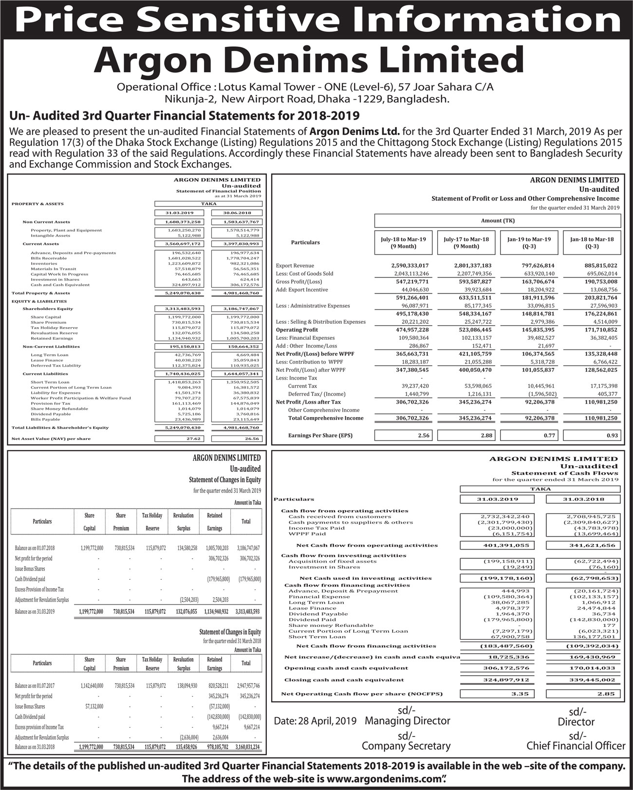 Q3 Financial Statements (Unaudited) of Argon Denims Limited