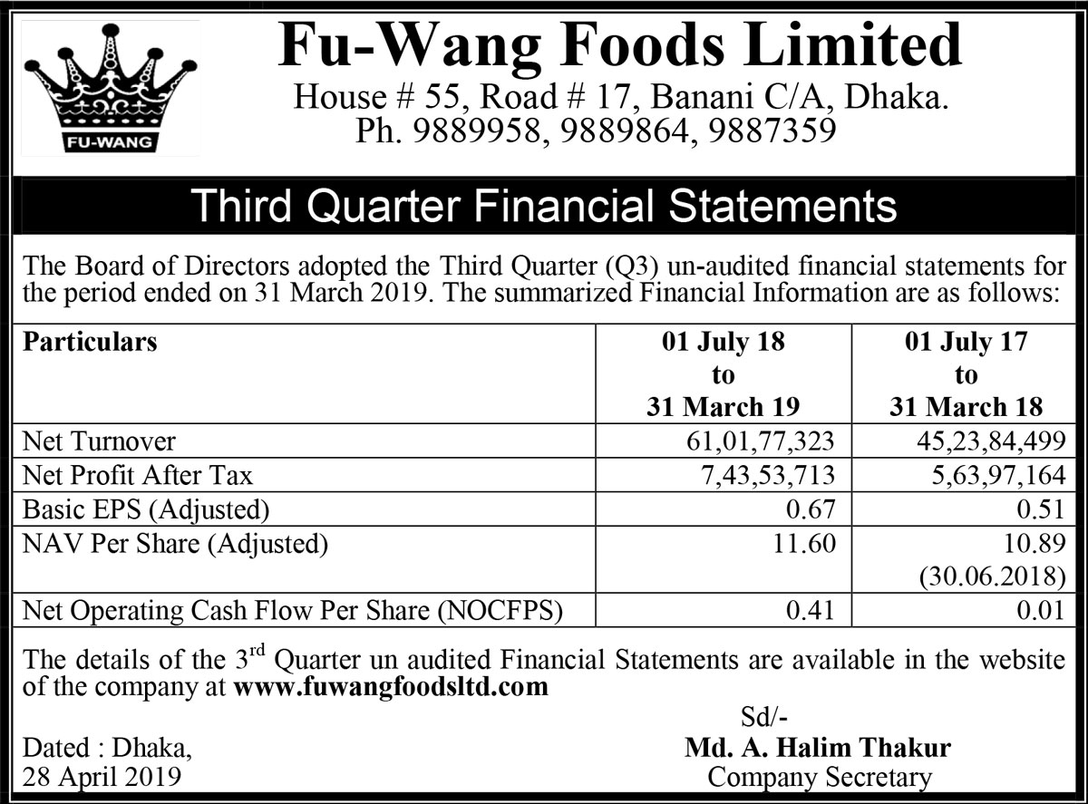 Q3 Financial Statements (Unaudited) of Fu-Wang Food Limited