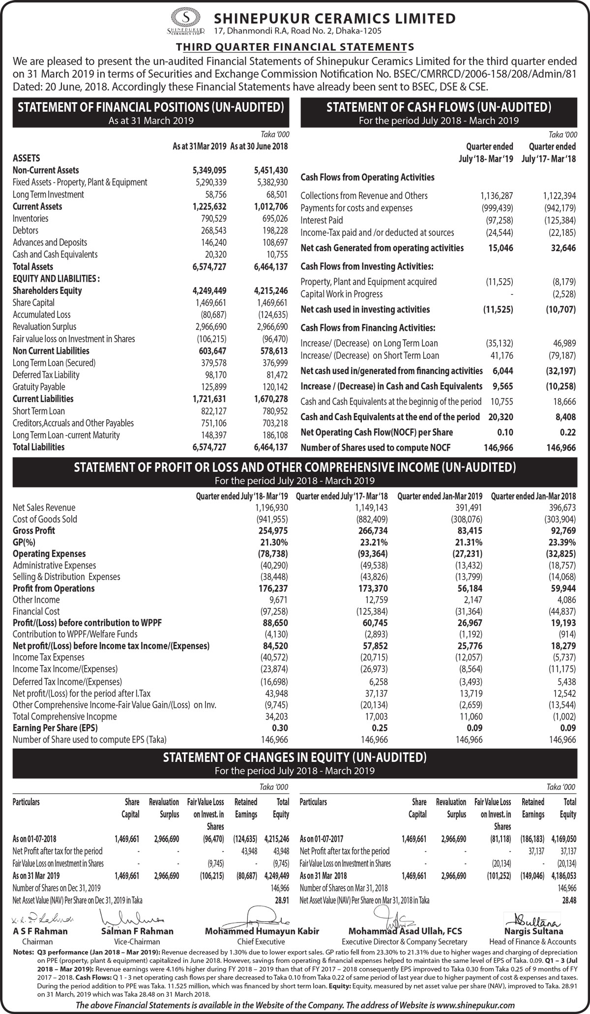 Q1 Financial Statements of Shinepukur Ceramics Ltd.