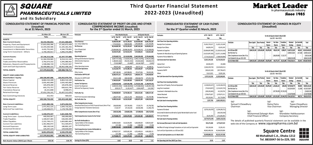 Q3 Financial Statements (Unaudited) of Square Pharmaceuticals Ltd