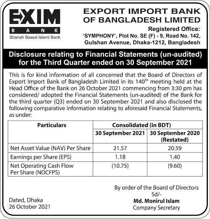 Half Yearly Un-audited Financial Statements of EXIM Bank