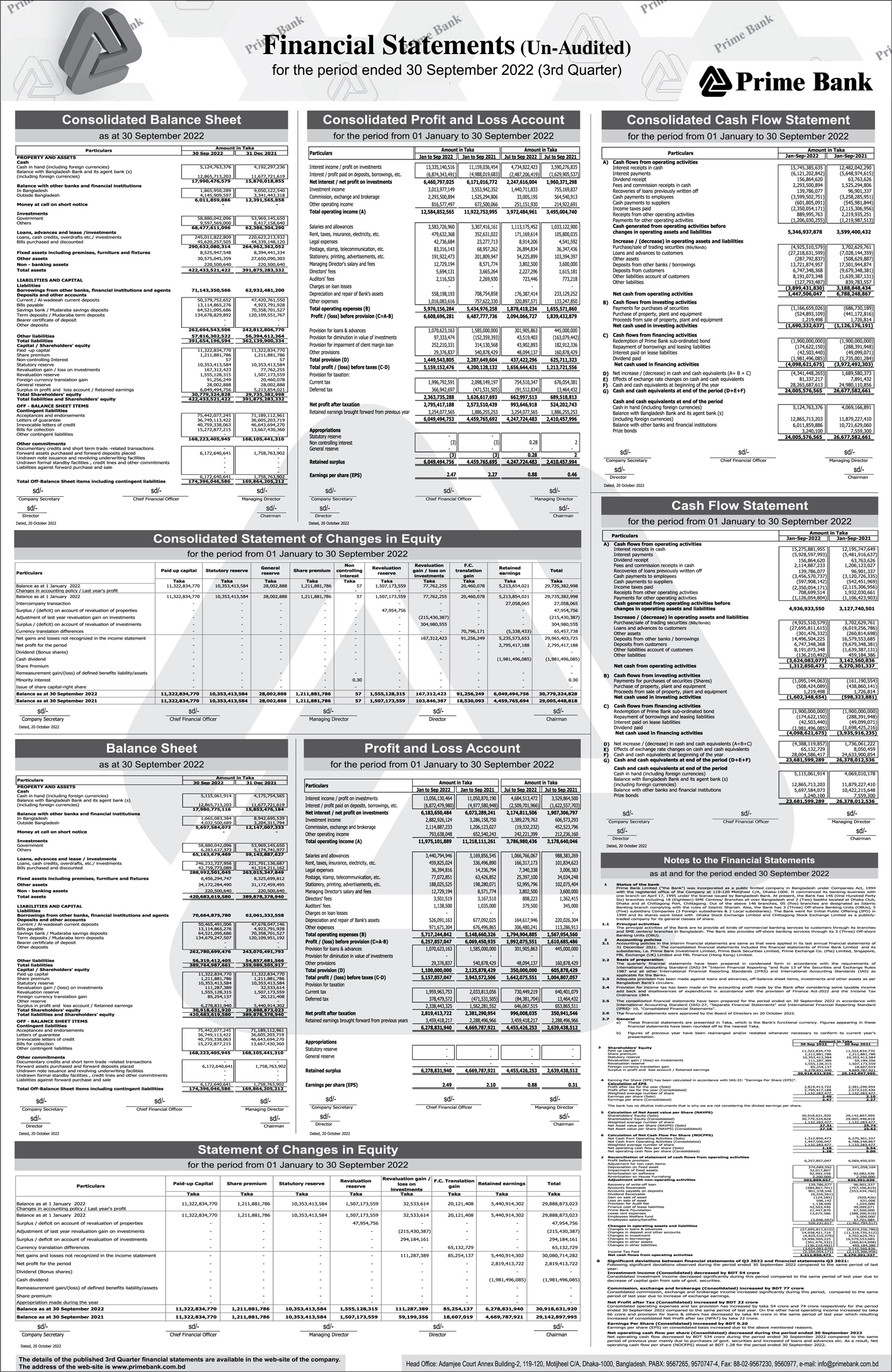 Q3 Finanical Statements (Un-audited) of Prime Bank Limited