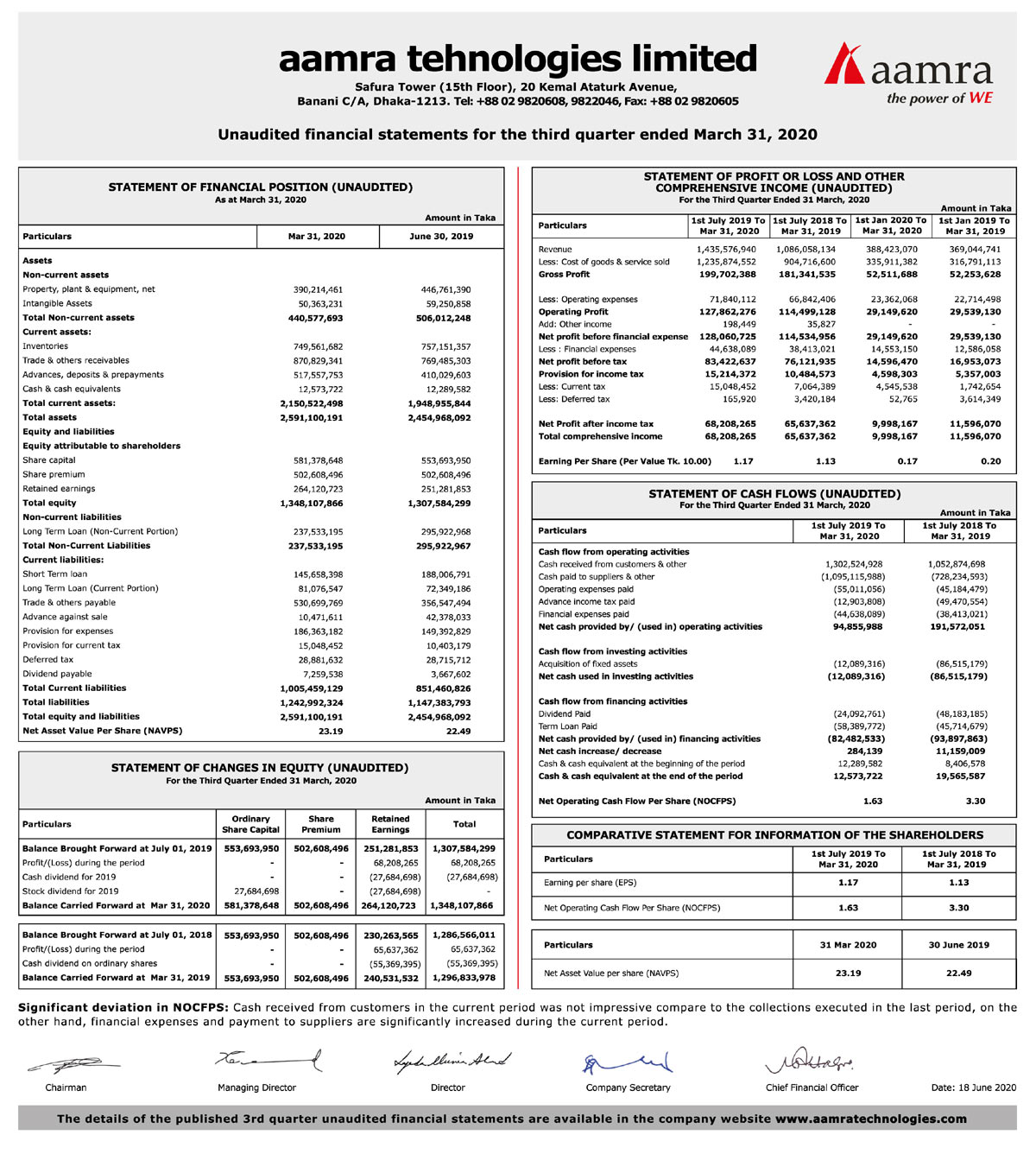 Q1 Financial Statements (Un-audited) of Aamra technologies limited