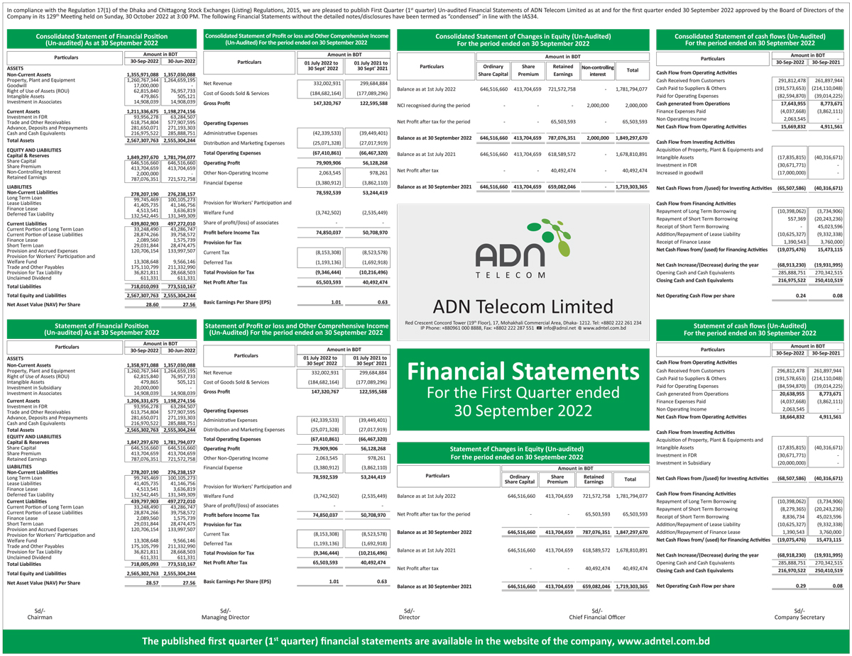 Q1 (Un-audited) Financial Statements of ADN Telecom Limited