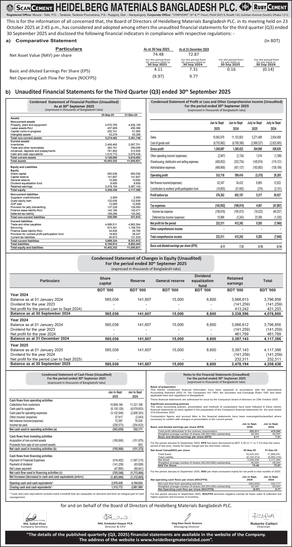 Q3 Un-audited Financial Statements of Heidelberg Materials Bangladesh PLC.