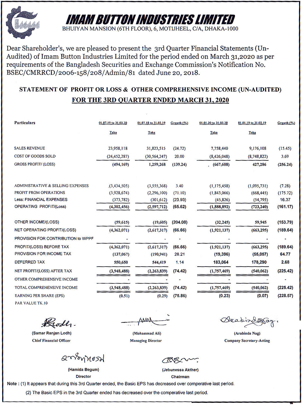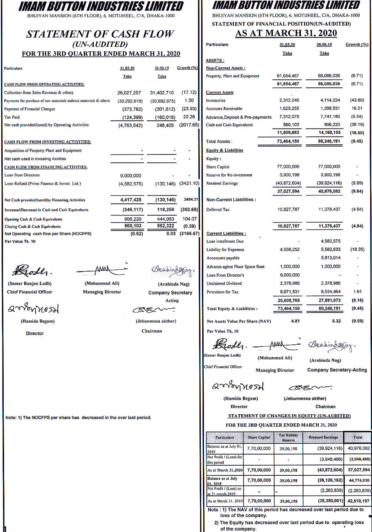 Q3 Un-audited Financial Statements of Imam Button Industries Ltd