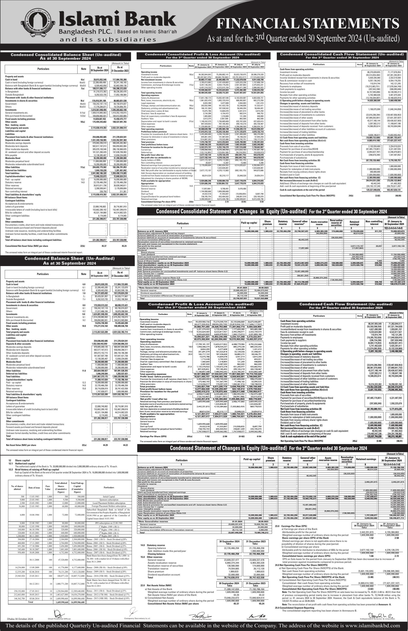 Q3 Un-audited Financial Statements of Islami Bank