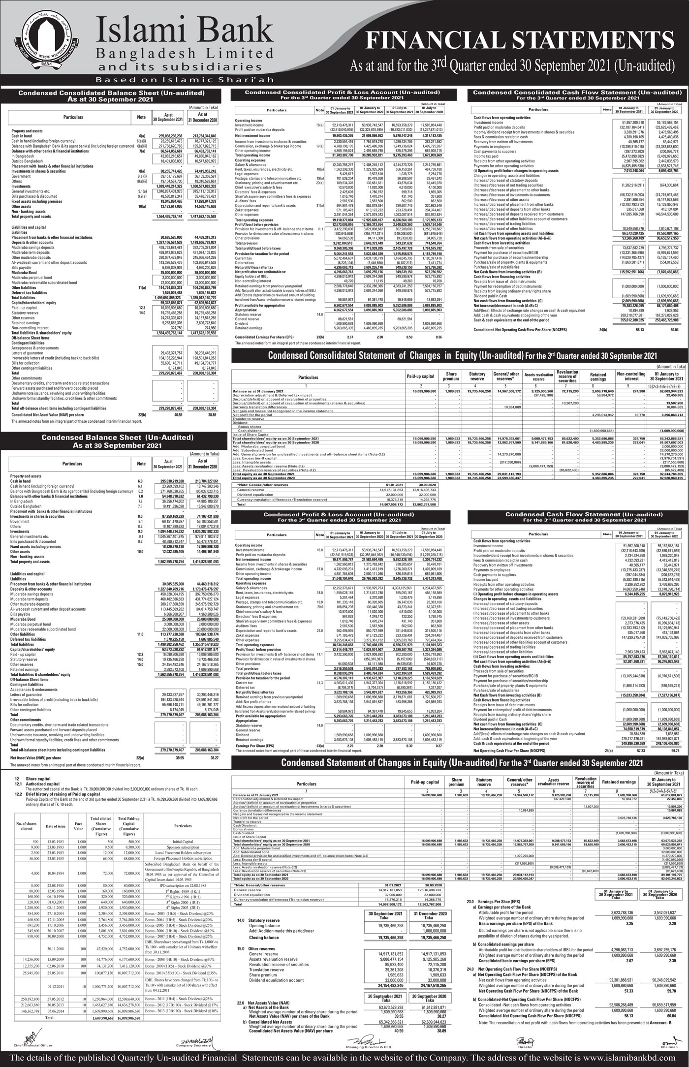 Q3 (Un-audited) Financial Statements of Islami Bank