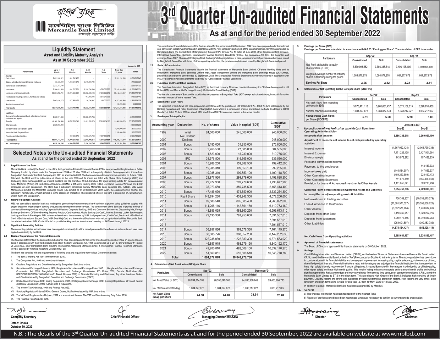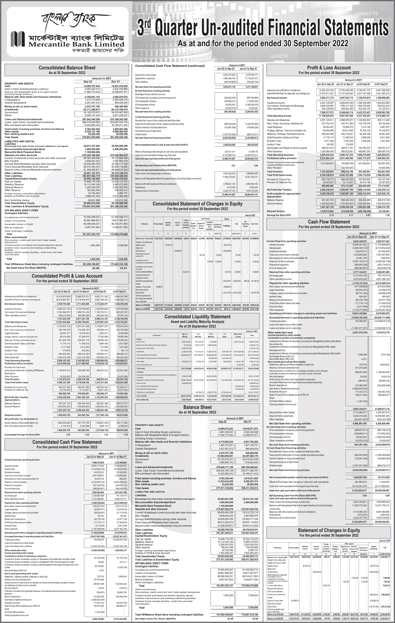 Q3 Un-audited Financial Statements of Mercantile Bank Limited.