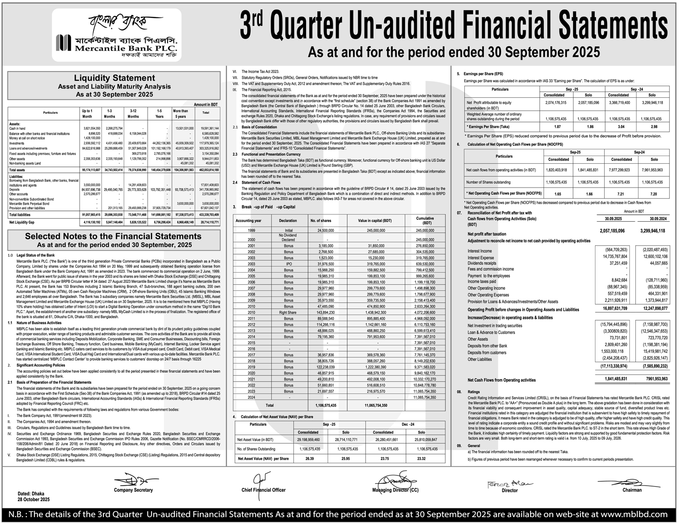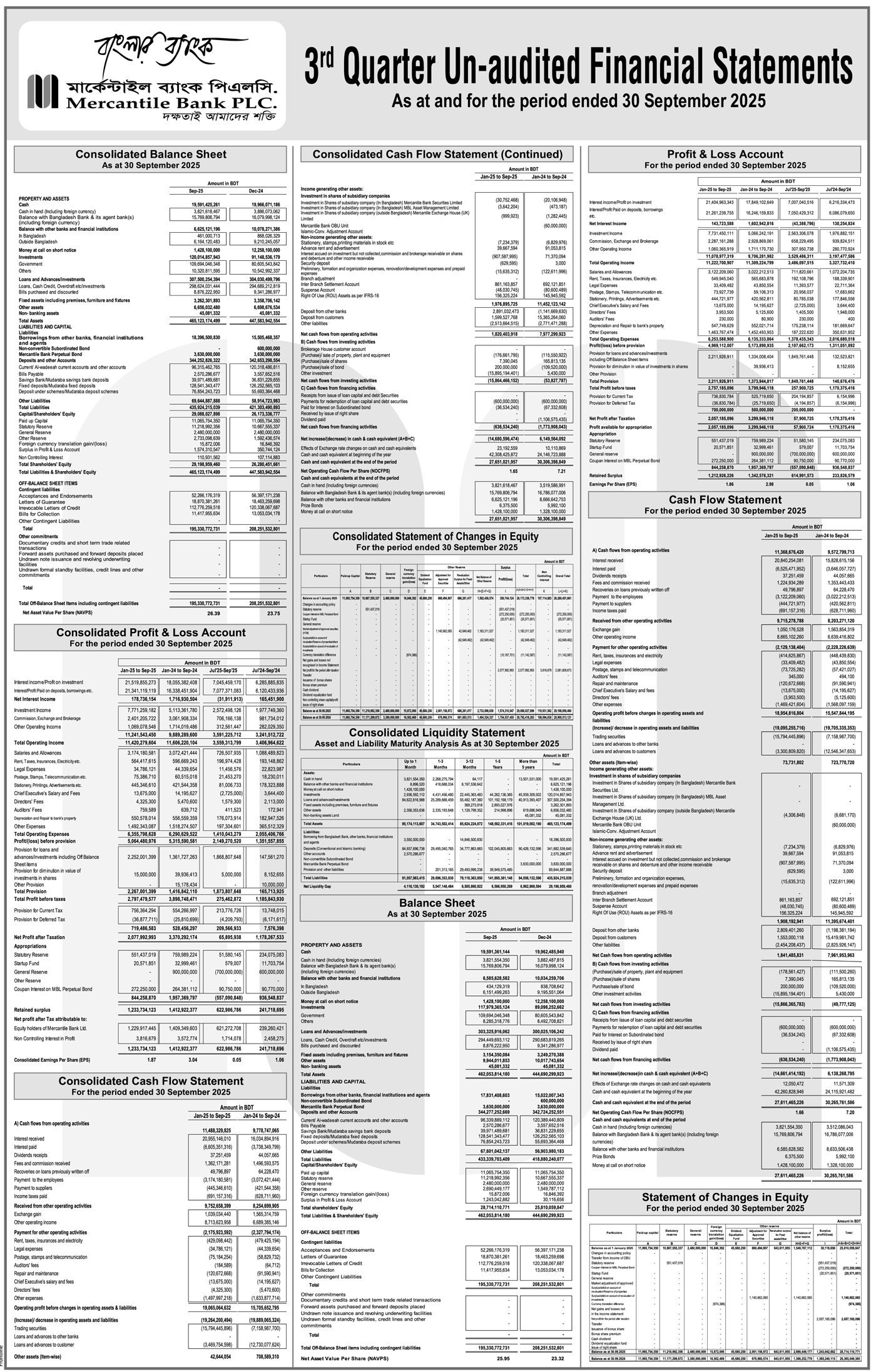 Q3 Un-audited Financial Statements of Mercantile Bank PLC.