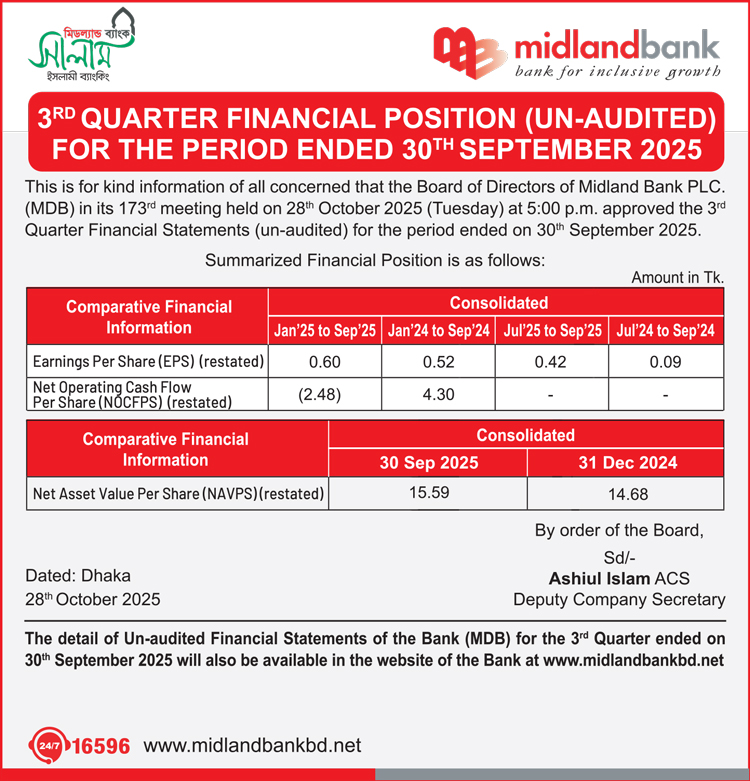 Q2 Financial Position (Un-audited) of Midland Bank Limited