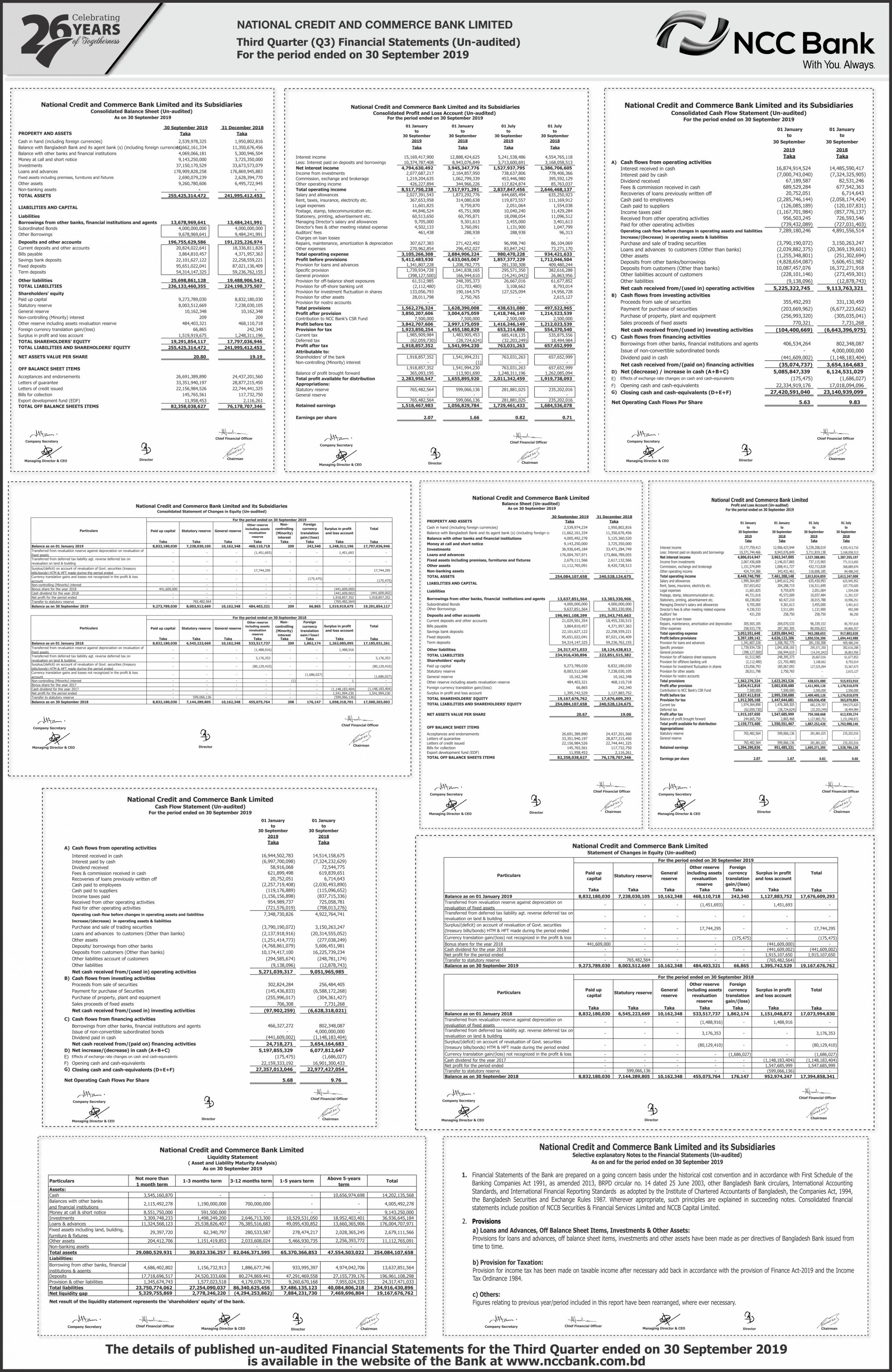 Q3 Un-audited Financial Statements of NCC Bank