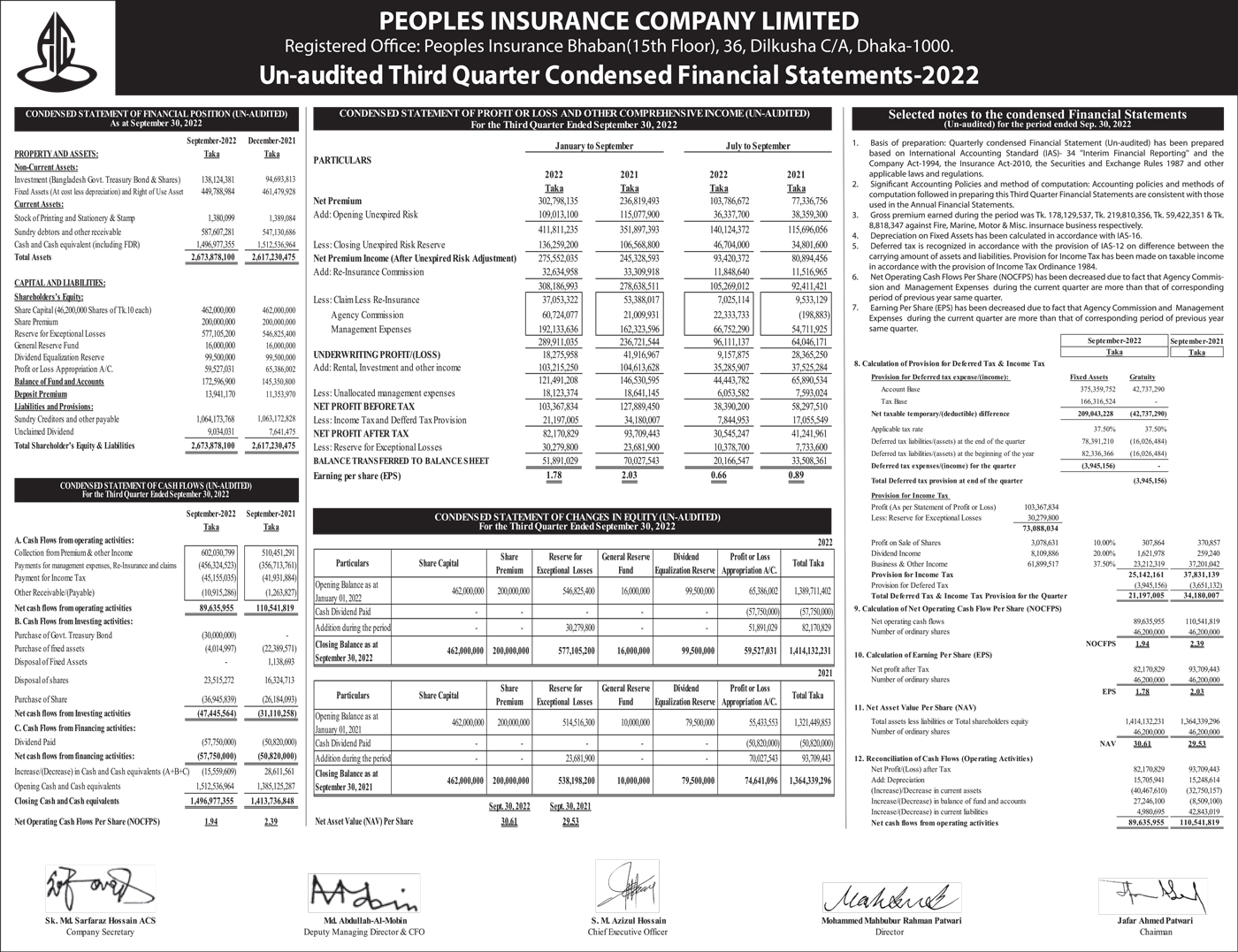 Q3 Un-audited Financial Statements of Peoples Insurance Company Limited