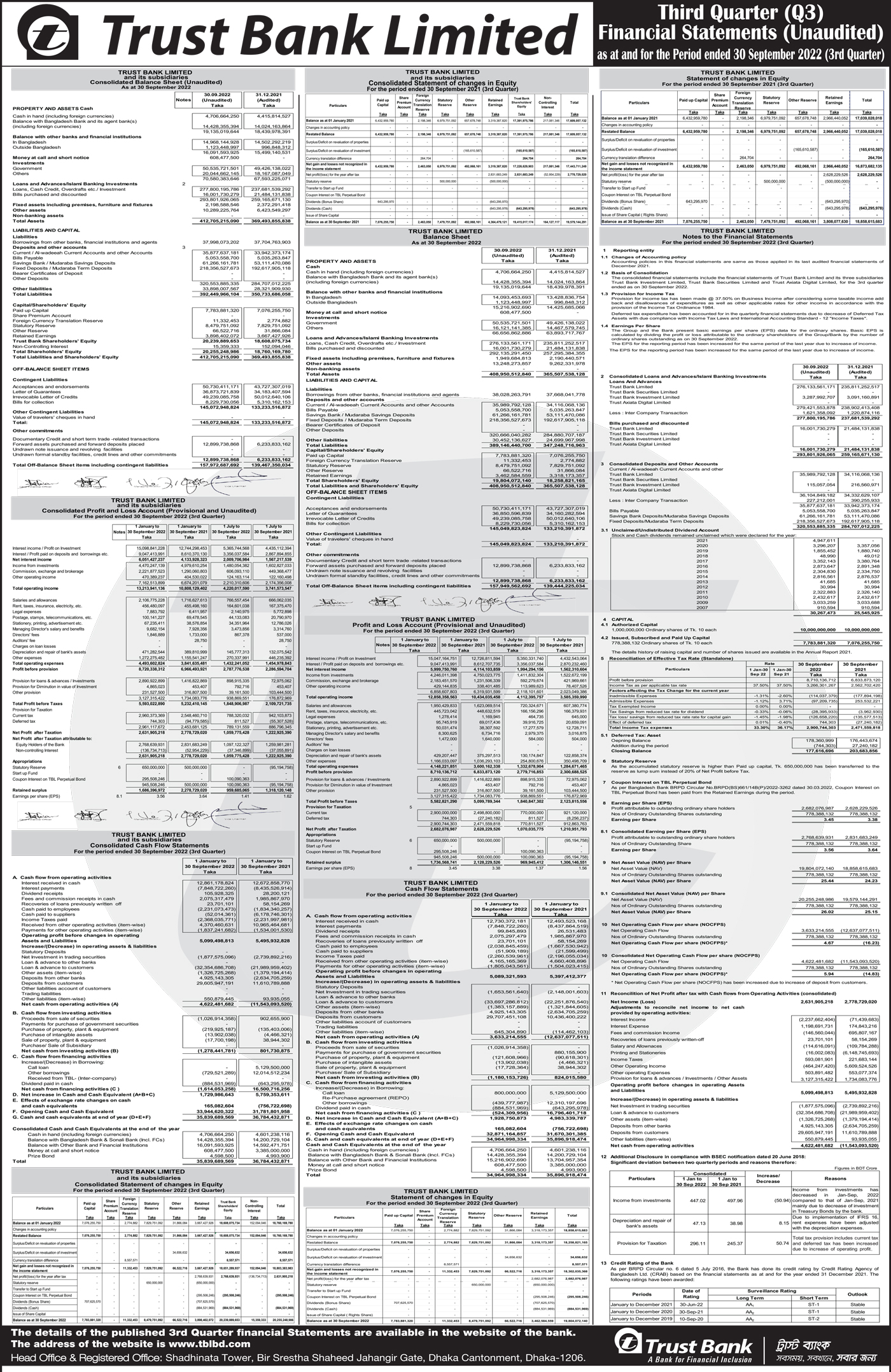 Q3 (Un-audited) Financial Statements of Trust Bank Limited