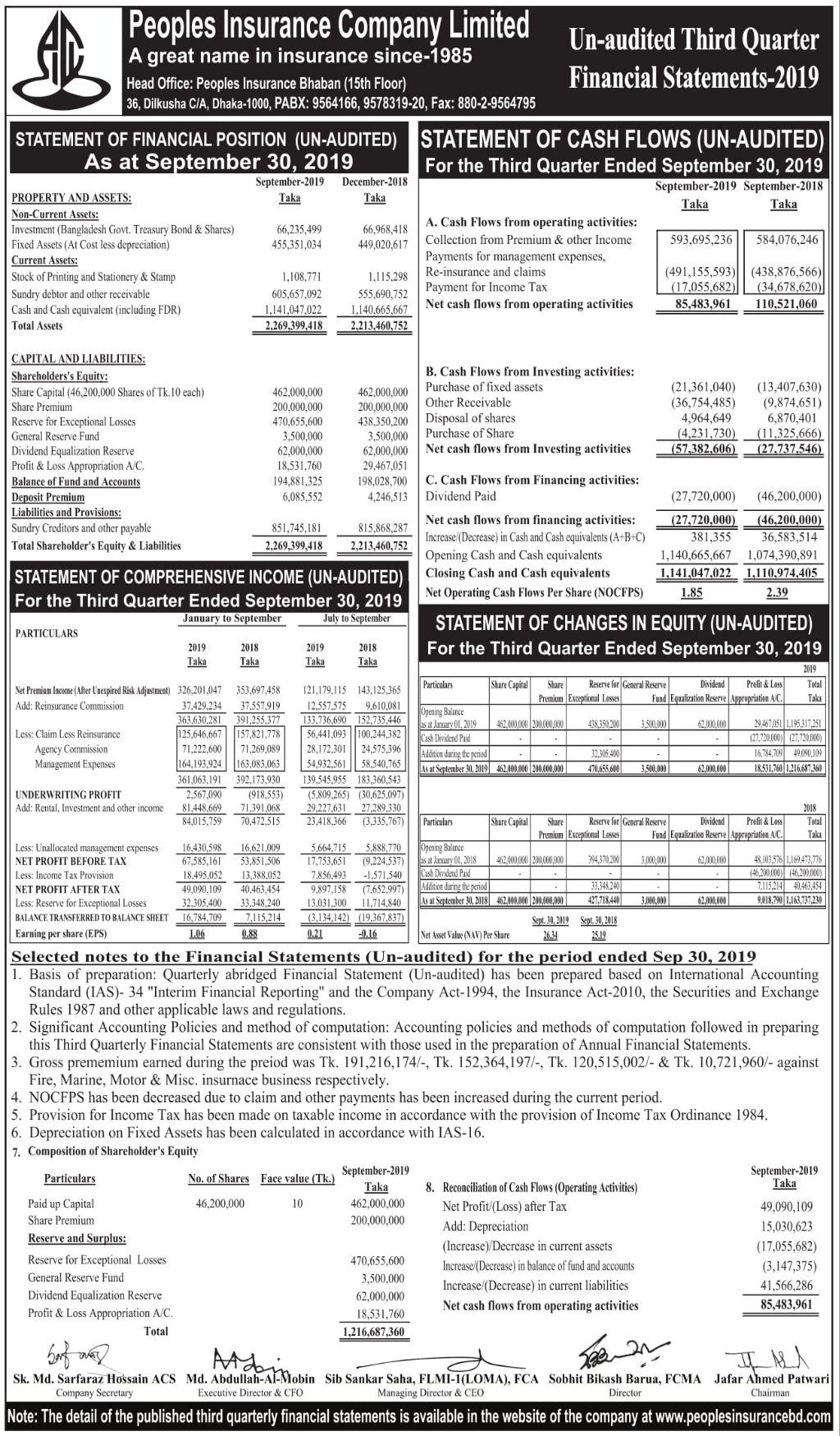 Q3 (Unaudited) Financial Statement of Peoples Insurance Company Ltd