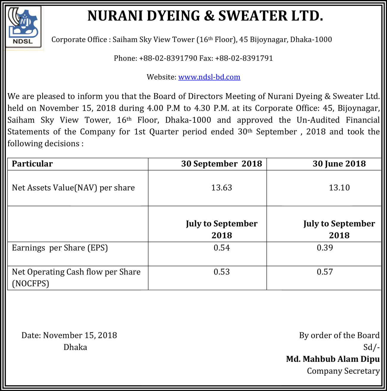 Price Sensitive Information of Nurani Dyeing &Sweater Ltd.