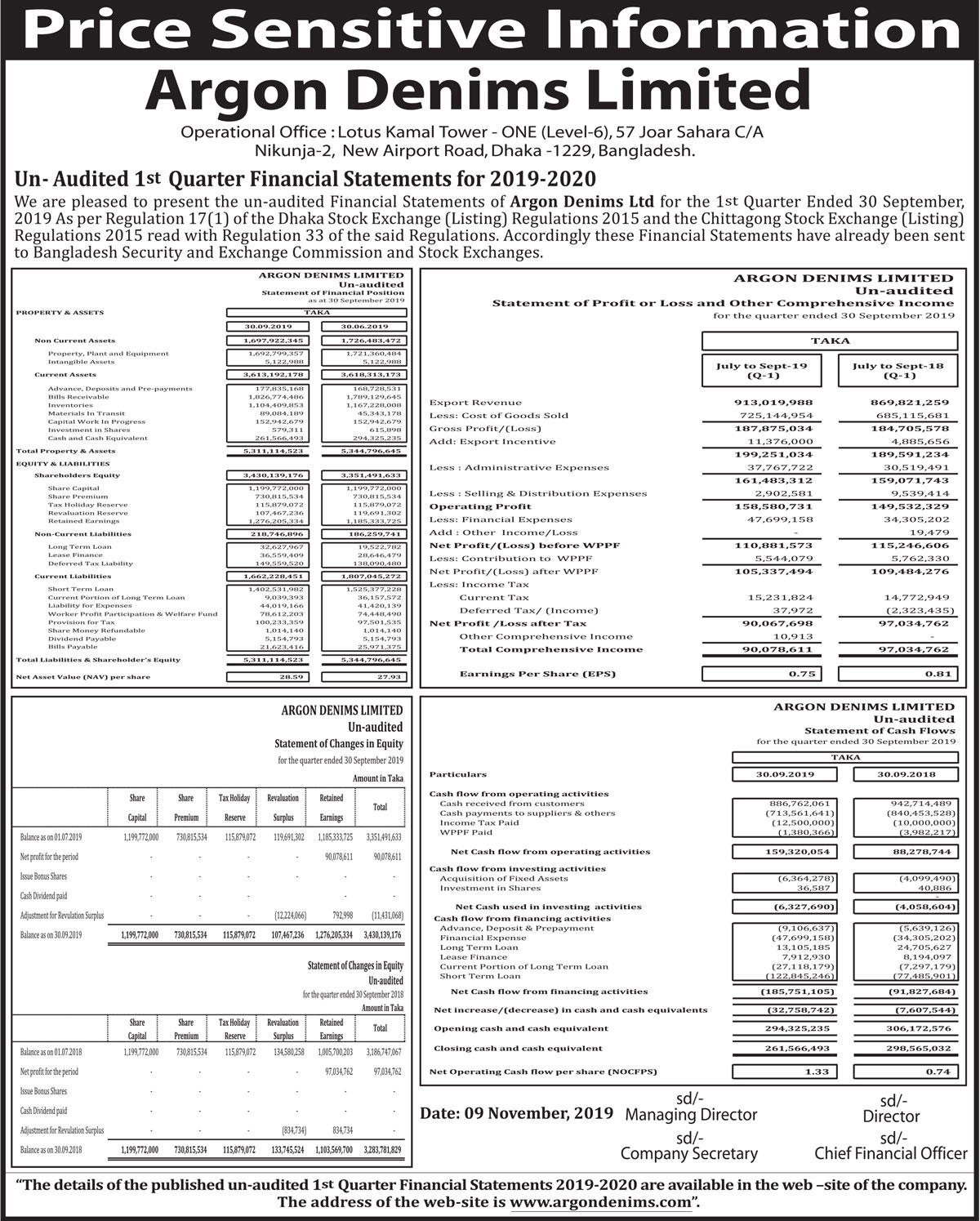 Qi Un-audited Financial Statements of Argon Denims Limited