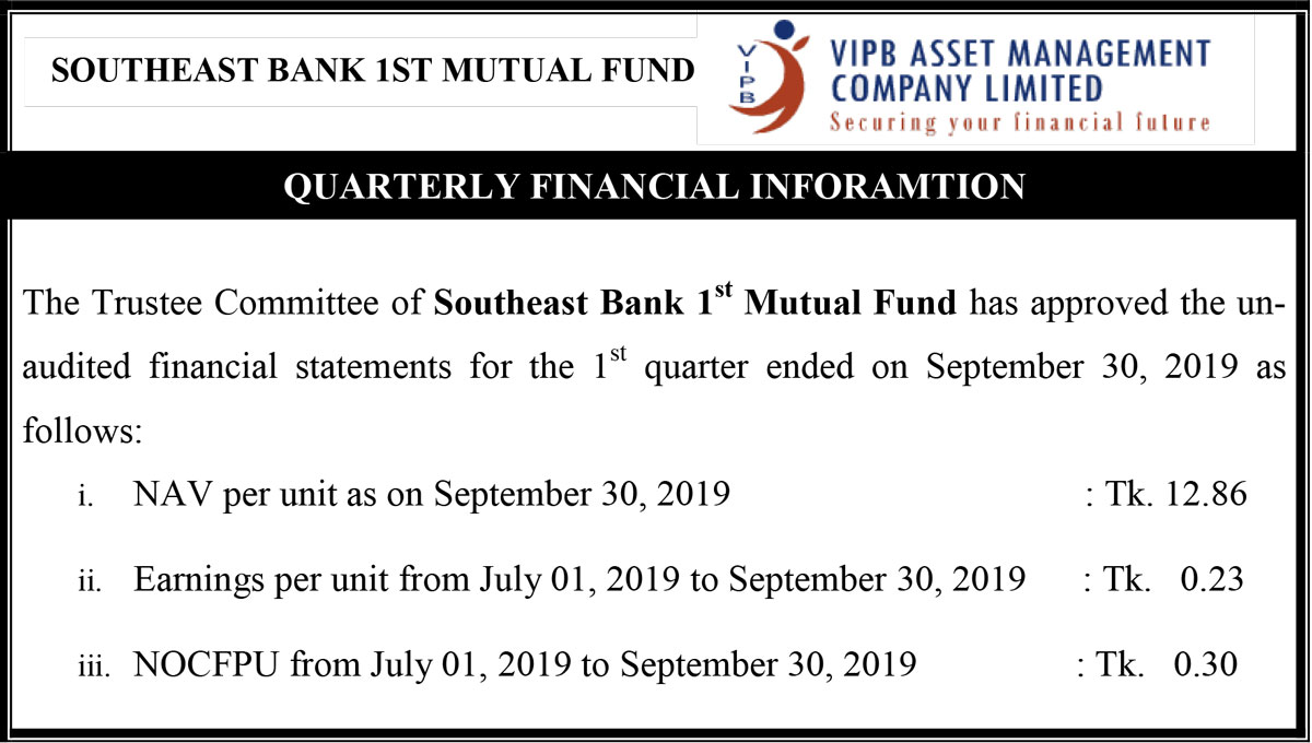 Quarterly Financial Information of Southeast Bank 1st Mutual Fund