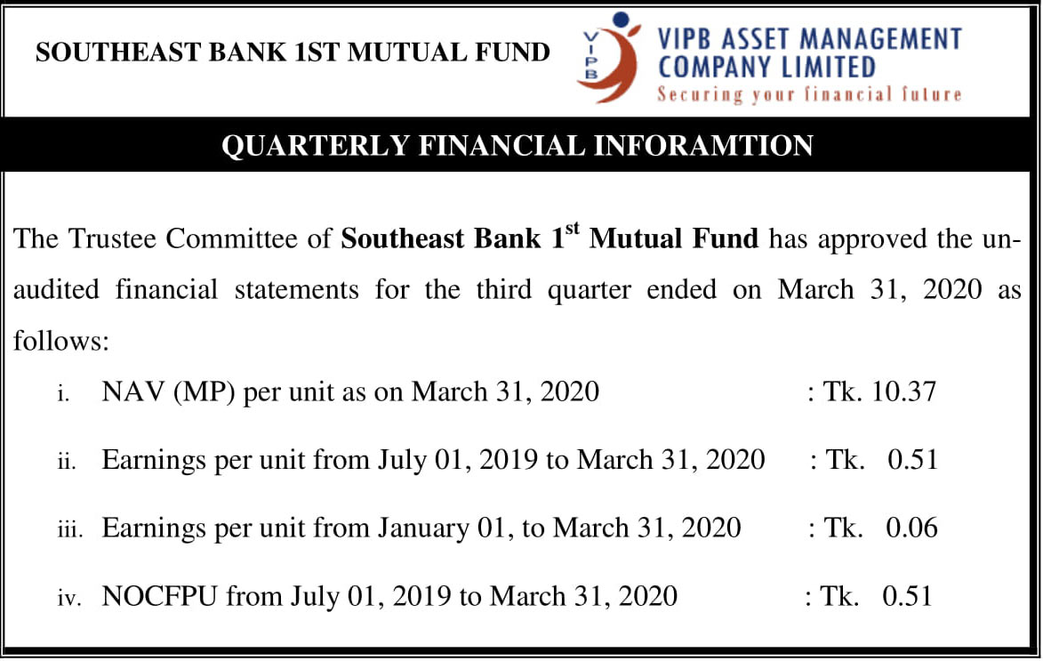 Quarterly Financial Information of Southeast Bank 1st Mutual Fund