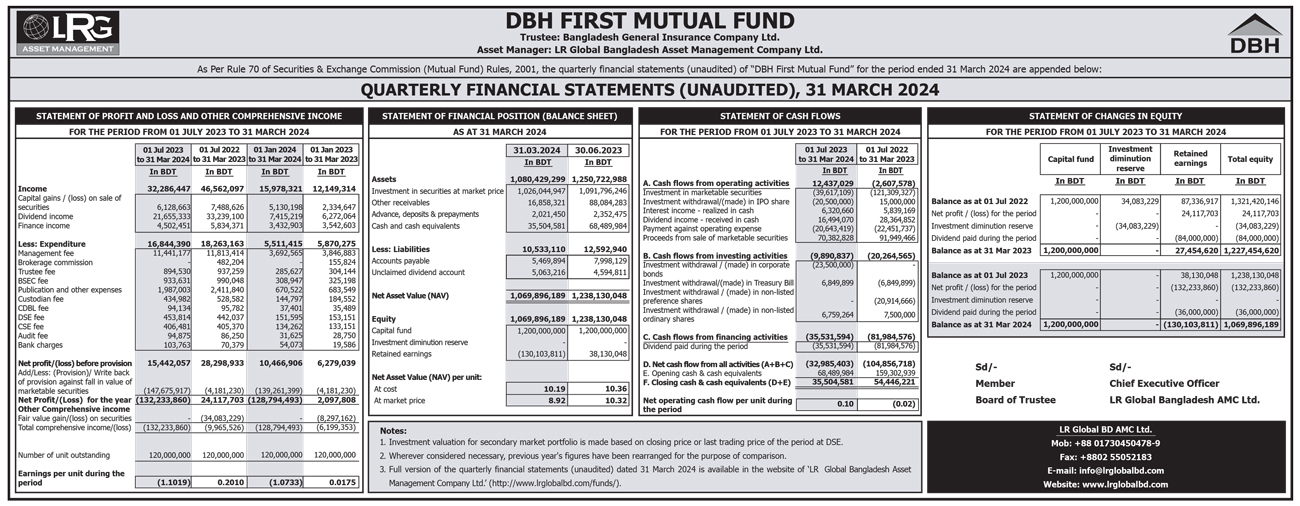 Quarterly Financial Statements (Un-audited) of DBH First Mutual Fund