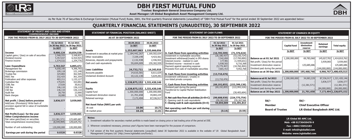 Quarterly Financial Statements (Un-audited) of DBH First Mutual Fund