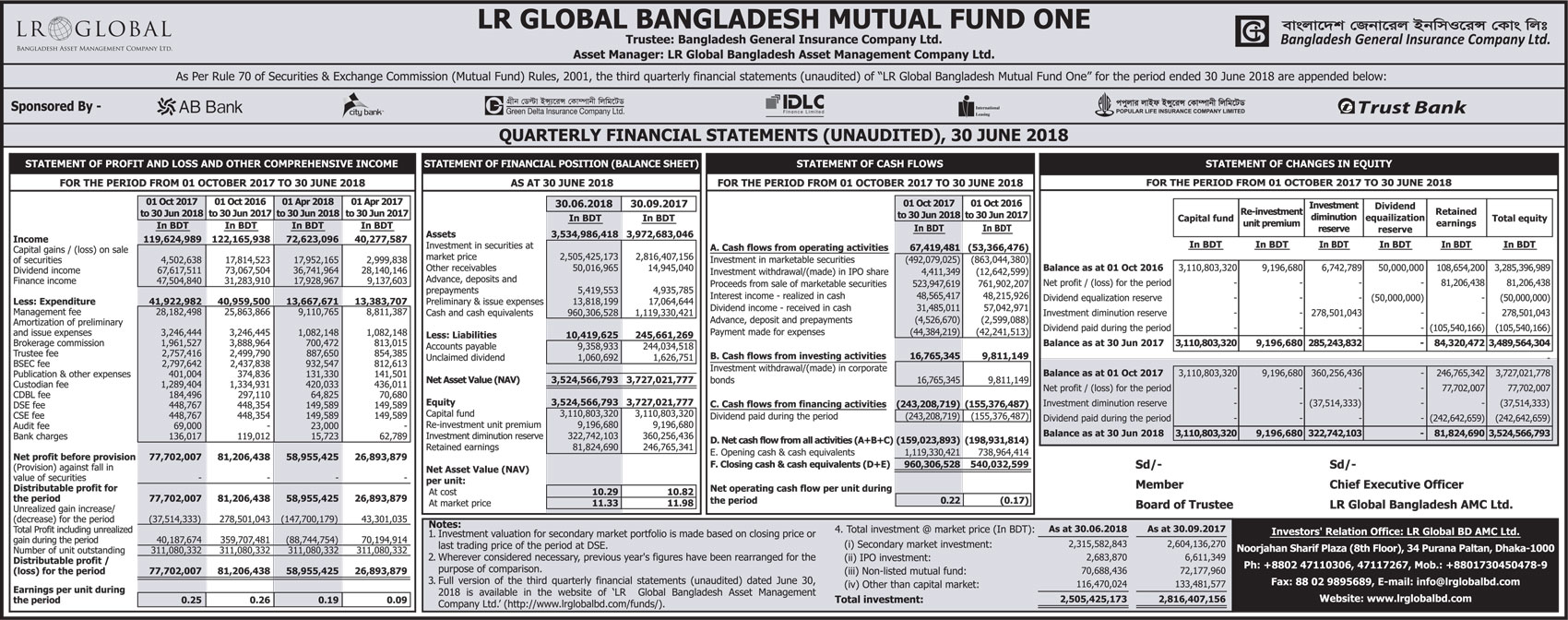 Quarterly Financial Statements (Un-audited) of LR Global Bangladesh Mutual Fund One