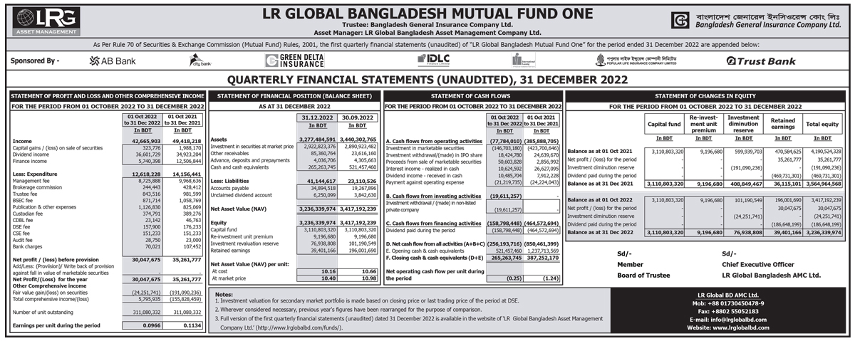 Quarterly Financial Statements (Un-audited) of LR Global Bangladesh Mutual Fund One