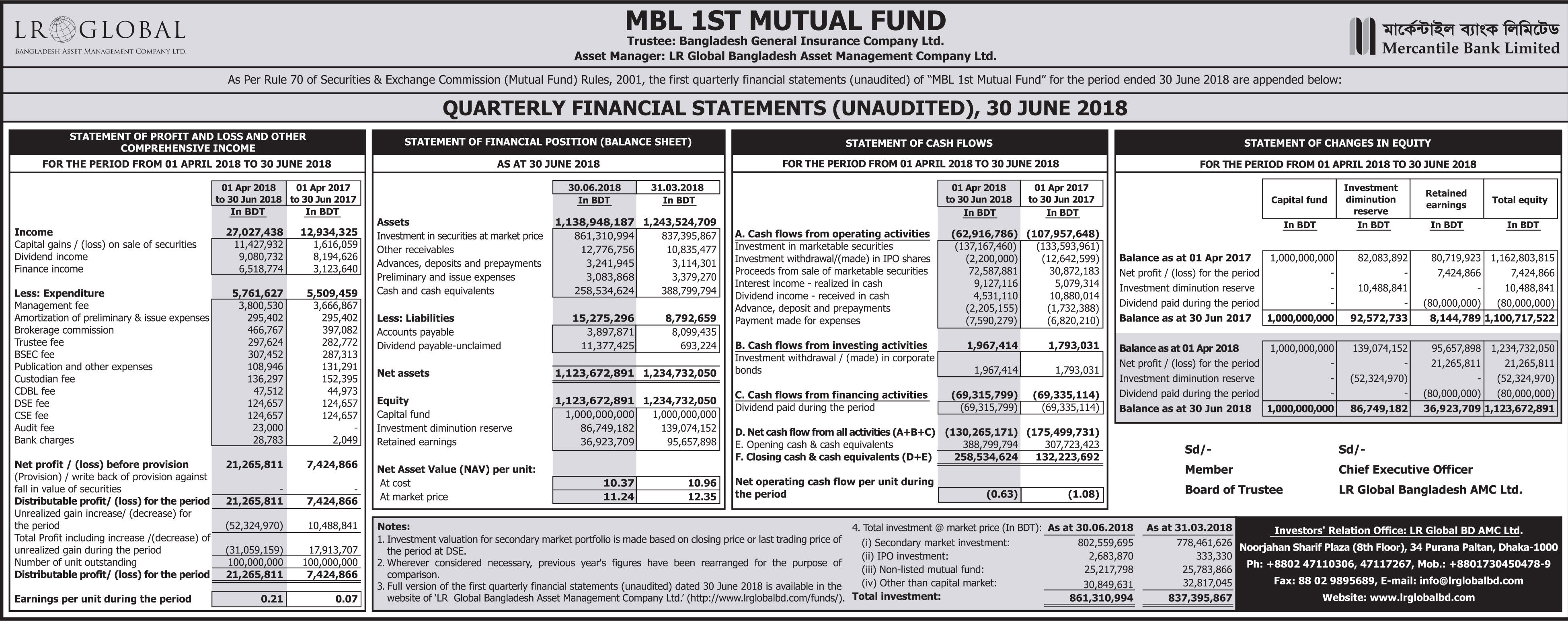 Price Sensitive Information Of MBL 1st Mutual Fund