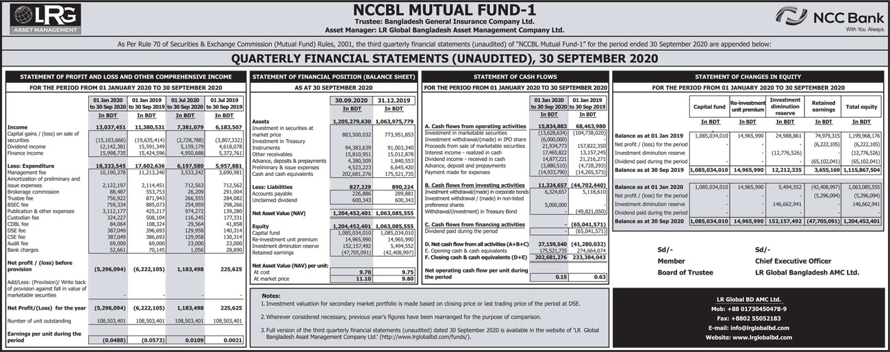 Quarterly Financial Statements (Un-audited) of NCCBL Mutual Fund-1