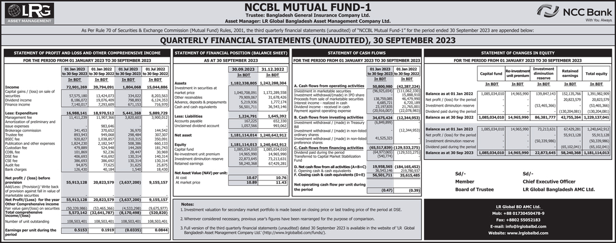 Quarterly Financial Statements (Un-audited) of NCCBL Mutual Fund-1