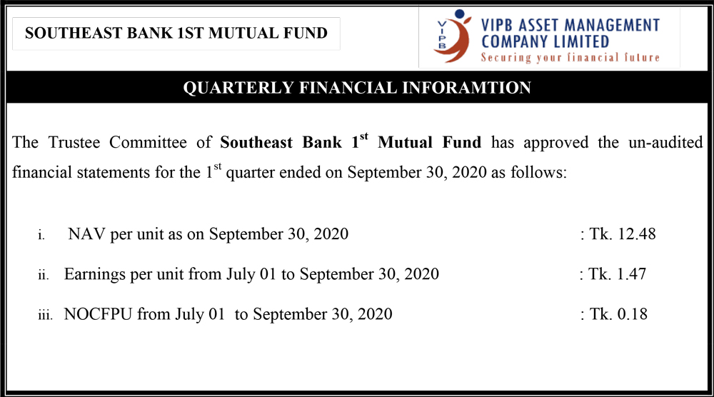 Quarterly Financial Information of Southeast Bank 1st Mutual Fund