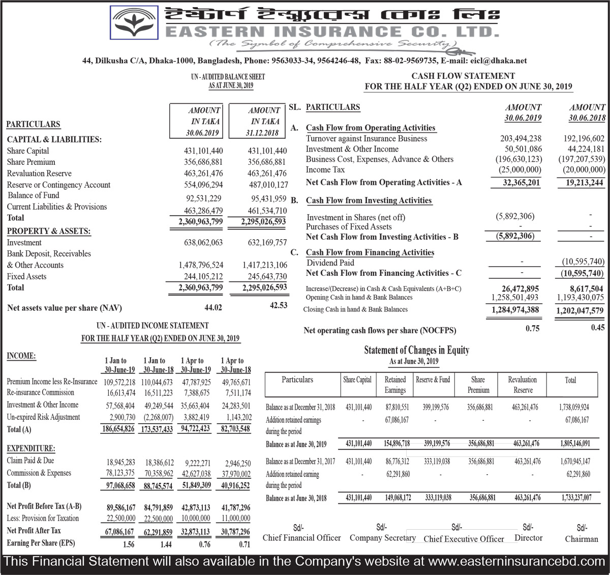 Half Yearly Financial Statements of Eastern Insurance Co. Ltd.