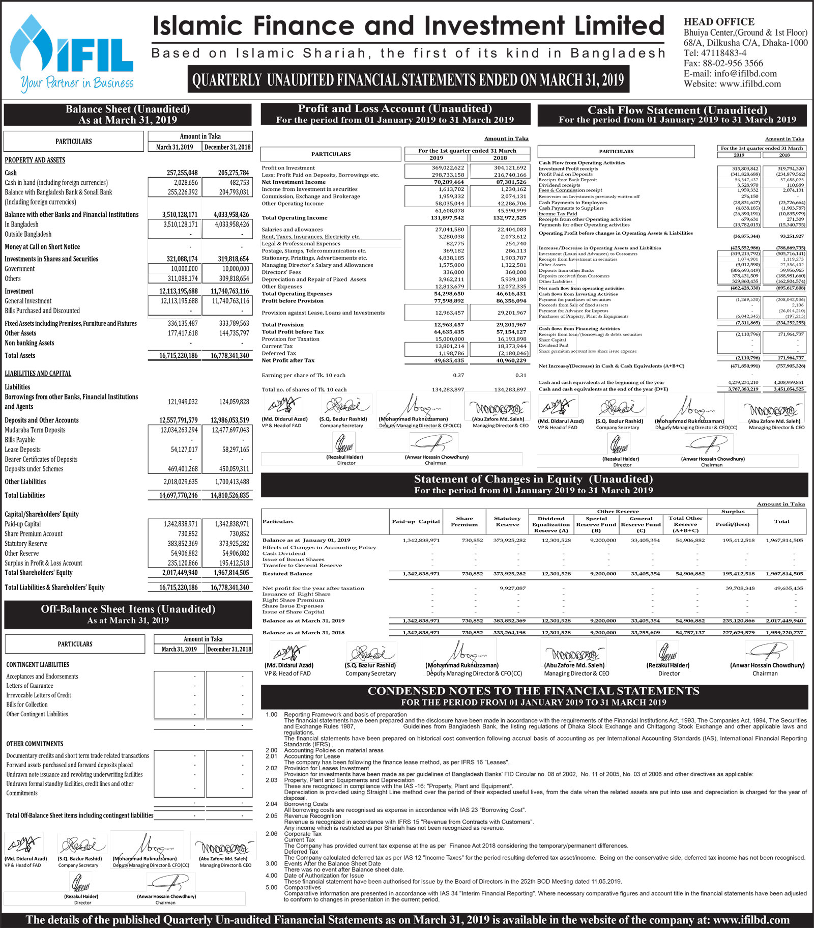 Q2 Un-audited Financial Statements of Islamic Finance & Investment Ltd