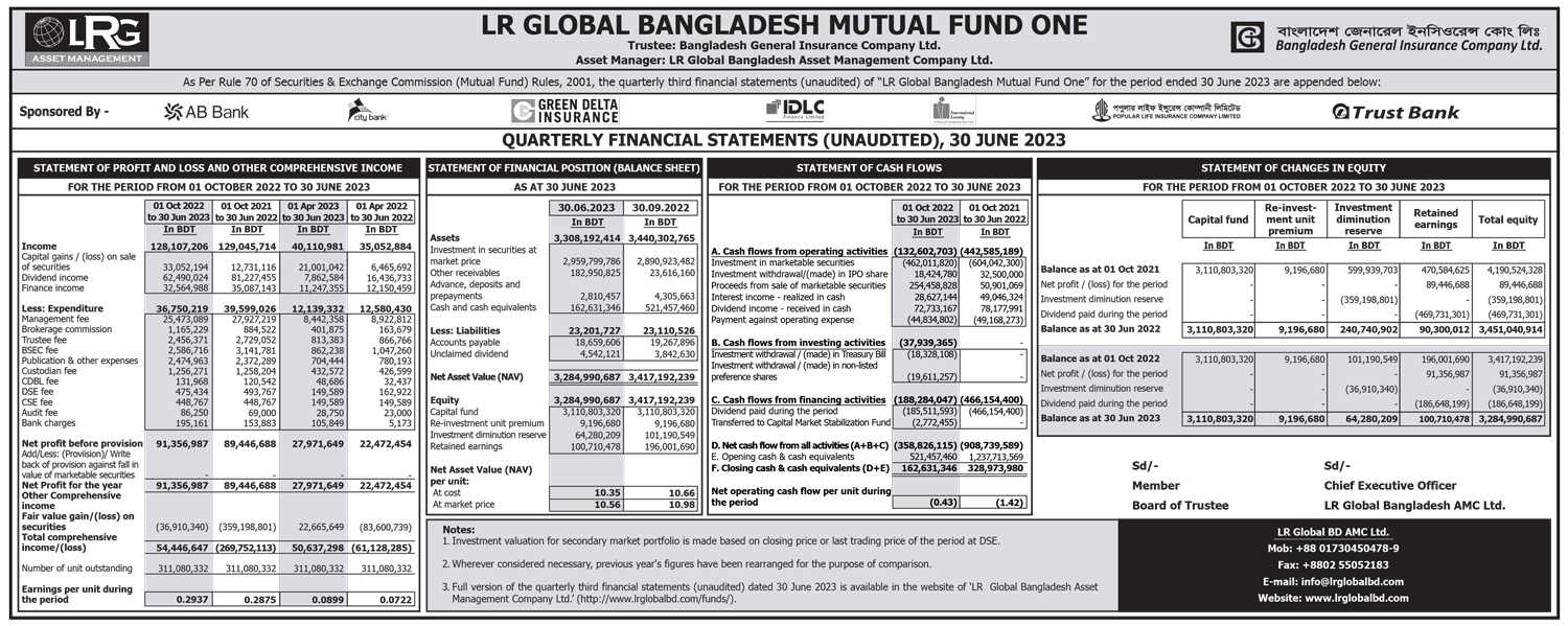 Quarterly Financial Statements (Un-audited) of LR Global Bangladesh Mutual Fund One