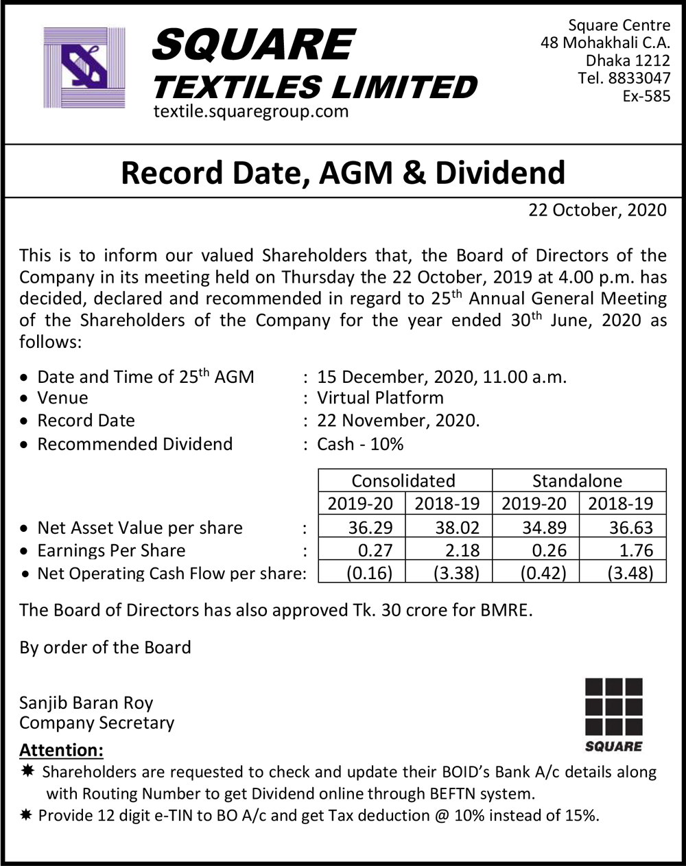 Q1 Financial Statements (Un-audited) of Square Textiles Ltd.