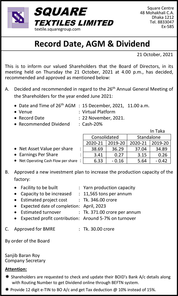 Q1 Financial Statements (Un-audited) of Square Textiles Ltd.