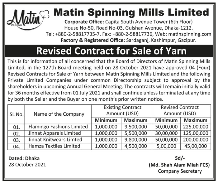 Revised Contract for Salte of Yarn of Matin Spinning Mills Ltd