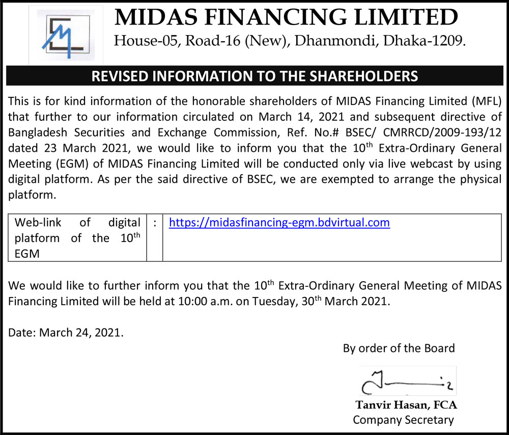 Notice Of 10th EGM Of MIDAS Financing Ltd