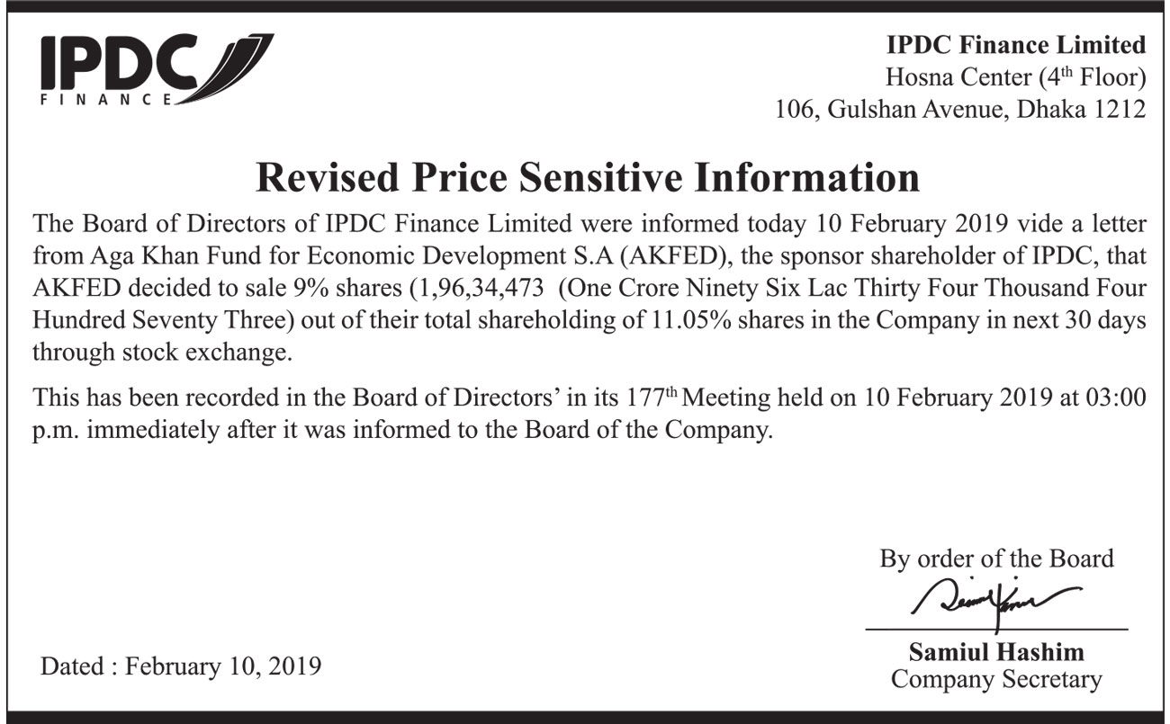 Price Sensitive Information for Credit Rating of IPDC Finance Limited