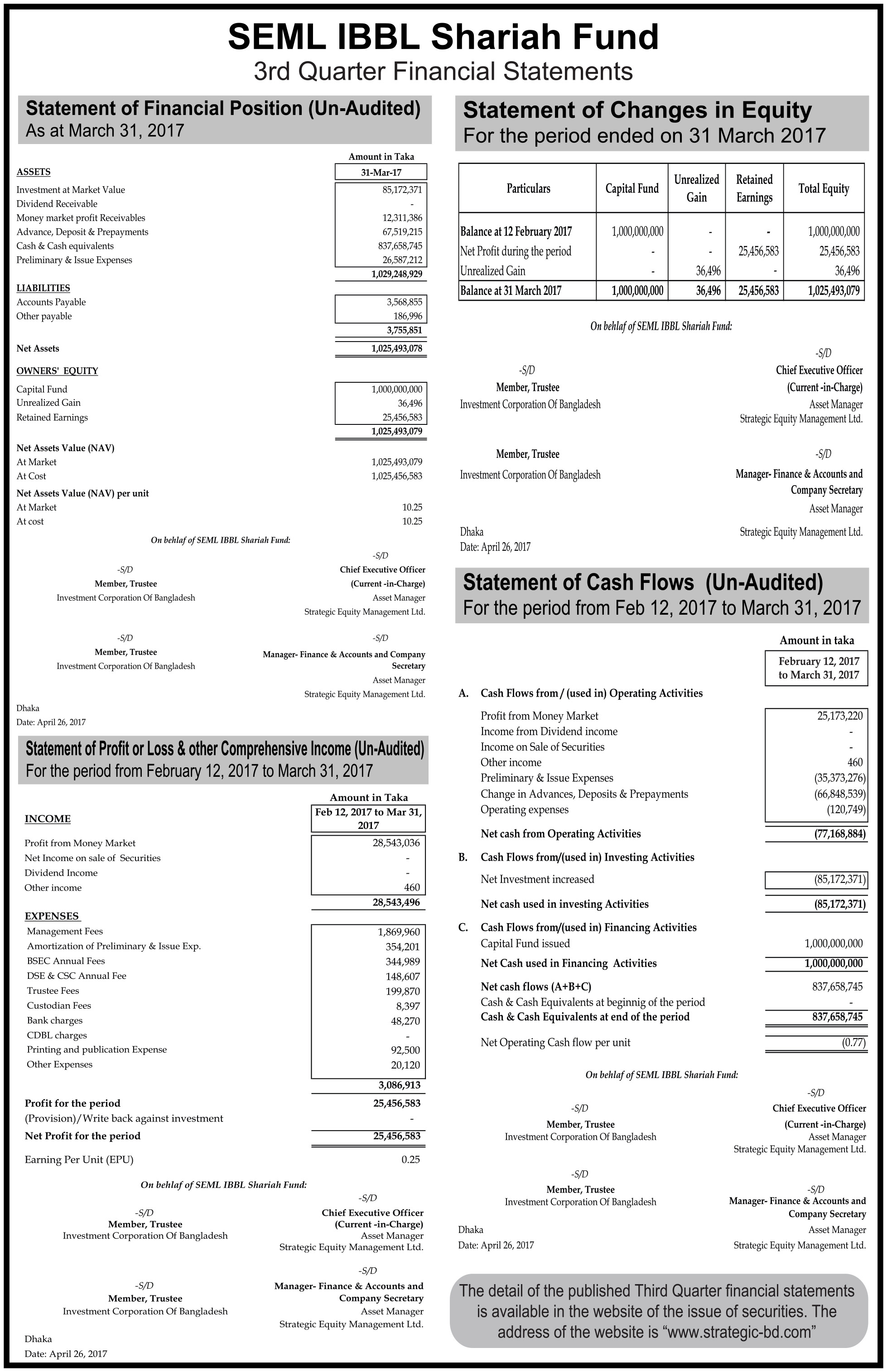 SEML IBBL Shariah Fund 3Q Financial Statements