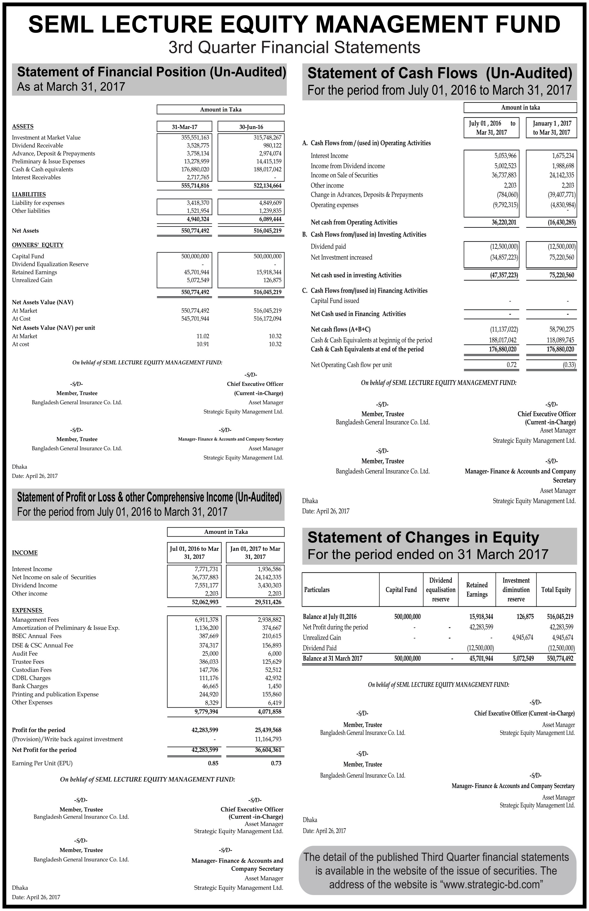 Q3 Financial Statements (Un-audited) of SEML Lecture Equity Management Fund